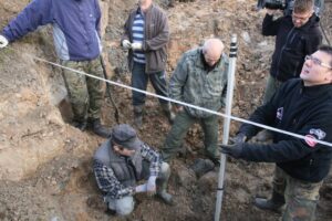 W miejscu jednoznacznie interpretowanym przez georadar rozpoczęto rozkopywanie łąki. Każda łyżka wydobywanej ziemi odkrywała nowe sensację i tajemnice.