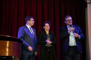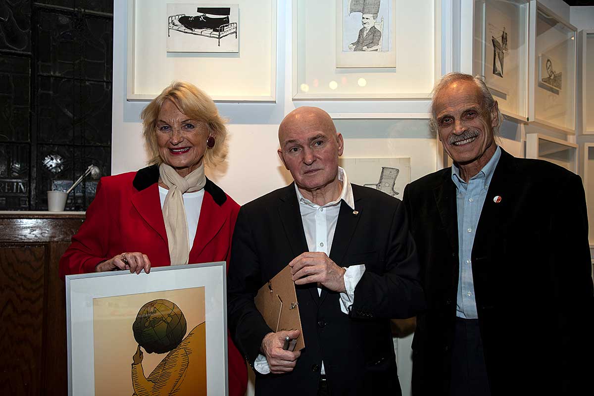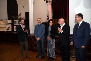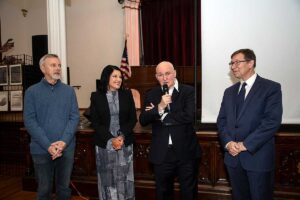 Specjalne podziękowania należą się nowym władzom Centrum Polsko-Słowiańskiego którzy udostępnili pięknie odnowioną salę przy 177 Kent Street na Brooklynie na wystawę i koncert. Gości witali Prezes CPS Marian Żak, Dyrektor Wykonawczy Agnieszka Granatowska oraz Skarbnik Zbigniew Solarz. Drugą instytucją, której należą się podziękowania jest Fundacja Kościuszkowska i jej Prezes Marek Skulimowski, za przechowanie olbrzymiej ilości prac Kapusty. Ale czego nie robi się dla genialnego artysty. Obie te instytucje otrzymały prace Janusza w prezencie.