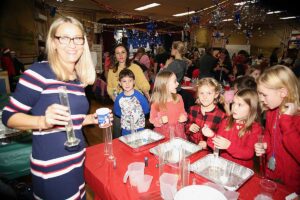 A później przez przez prawie cztery godziny wszyscy świetnie się bawili i korzystali z przygotowanych atrakcji. Dla dzieci była wata cukrowa, hot-dogi i smaczne pierogi, a dla dorosłych ciepły posiłek przygotowany przez Park Deli. Niesamowitą popularnością wśród najmłodszych cieszyło się tzw. malowanie twarzy i robienie dziecięcych tatuaży. Maluchy mogły otrzymać ulubioną bajkową postać zrobioną z balonów, a także skorzystać z zajęć typu arts & crafts. Dzieci malowały kamyczki, robiły biżuterię, a nawet uczestniczyły w eksperymentach chemicznych, podczas których powstawał śnieg.