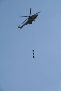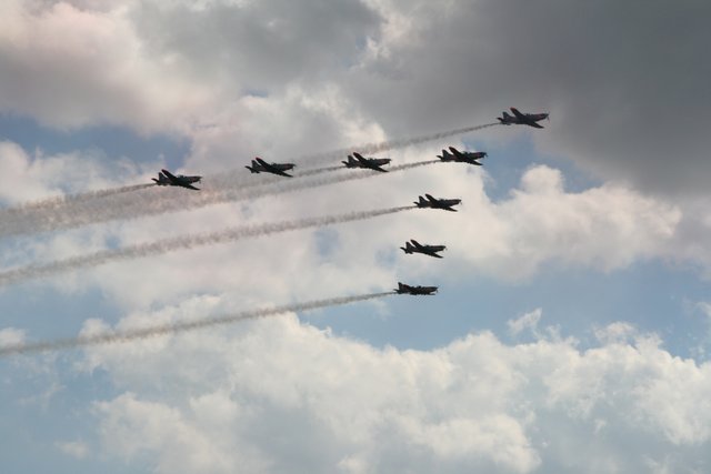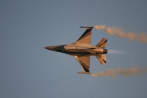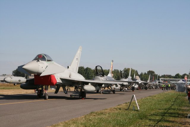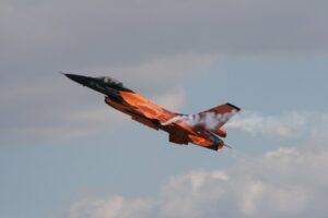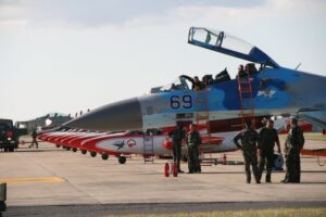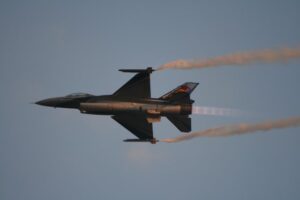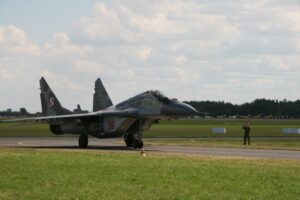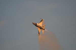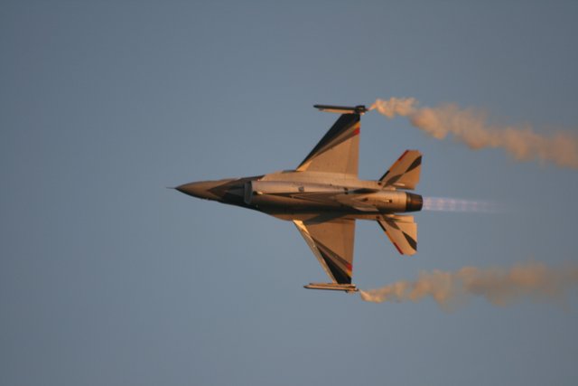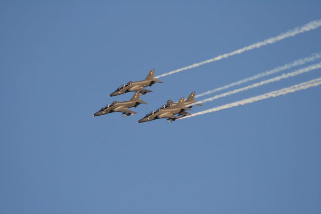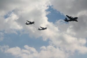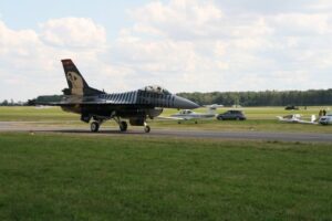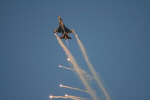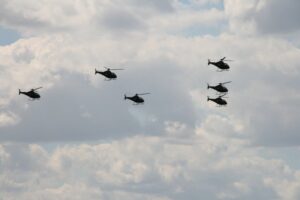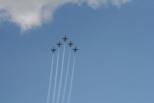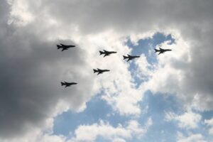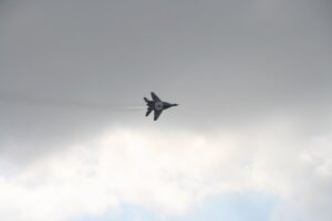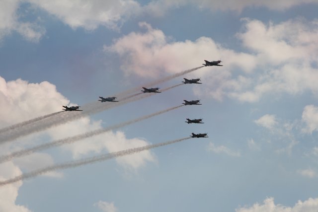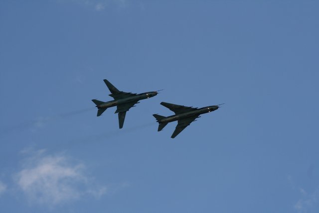 Defiladę zamknęły samoloty bojowe. W pierwszej kolejności przeleciały szturmowe Su-22. Na koniec publiczności zaprezentowało się pięć myśliwców MiG-29 oraz wielozadaniowe F-16.