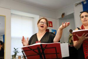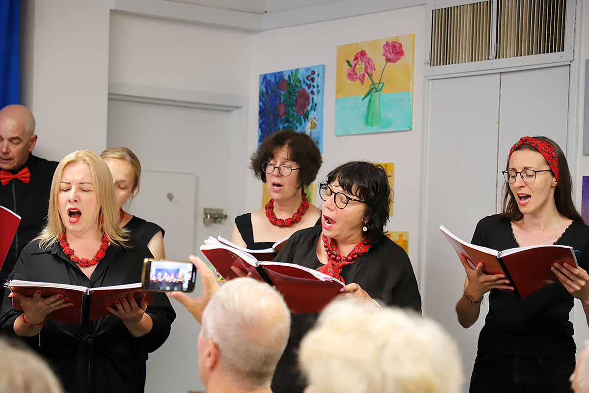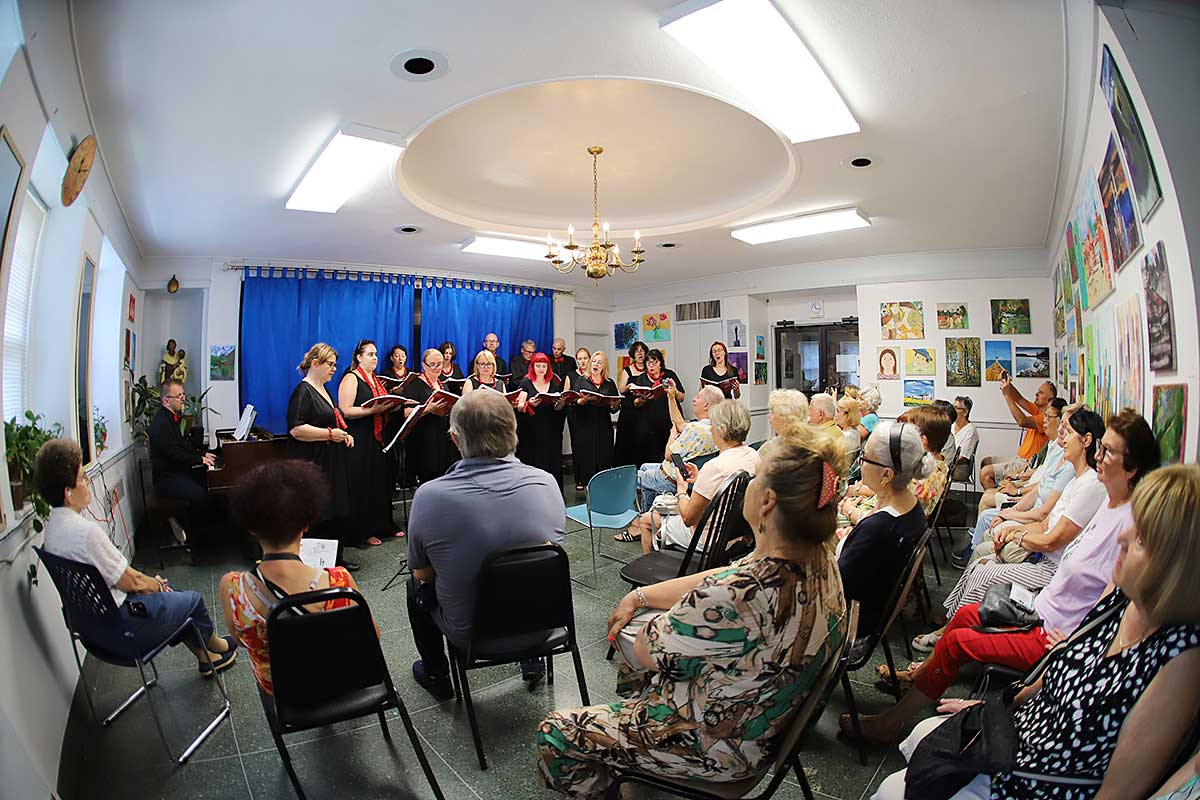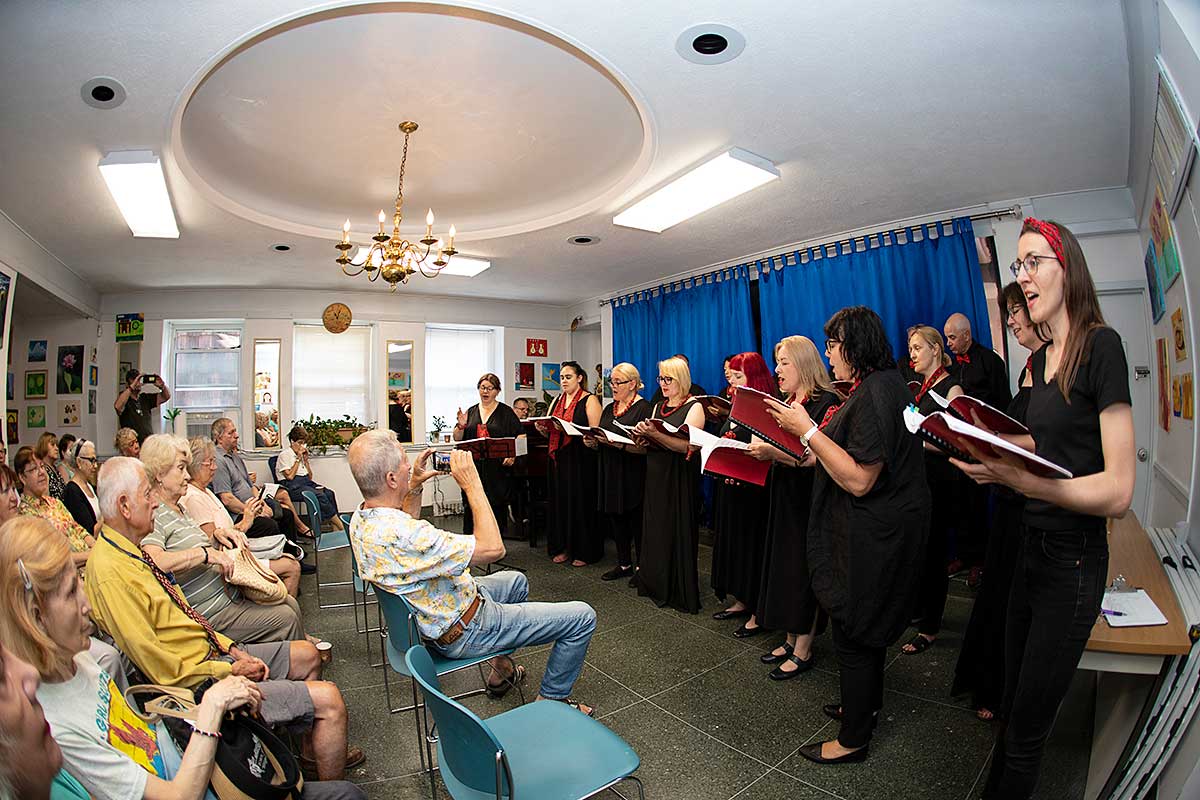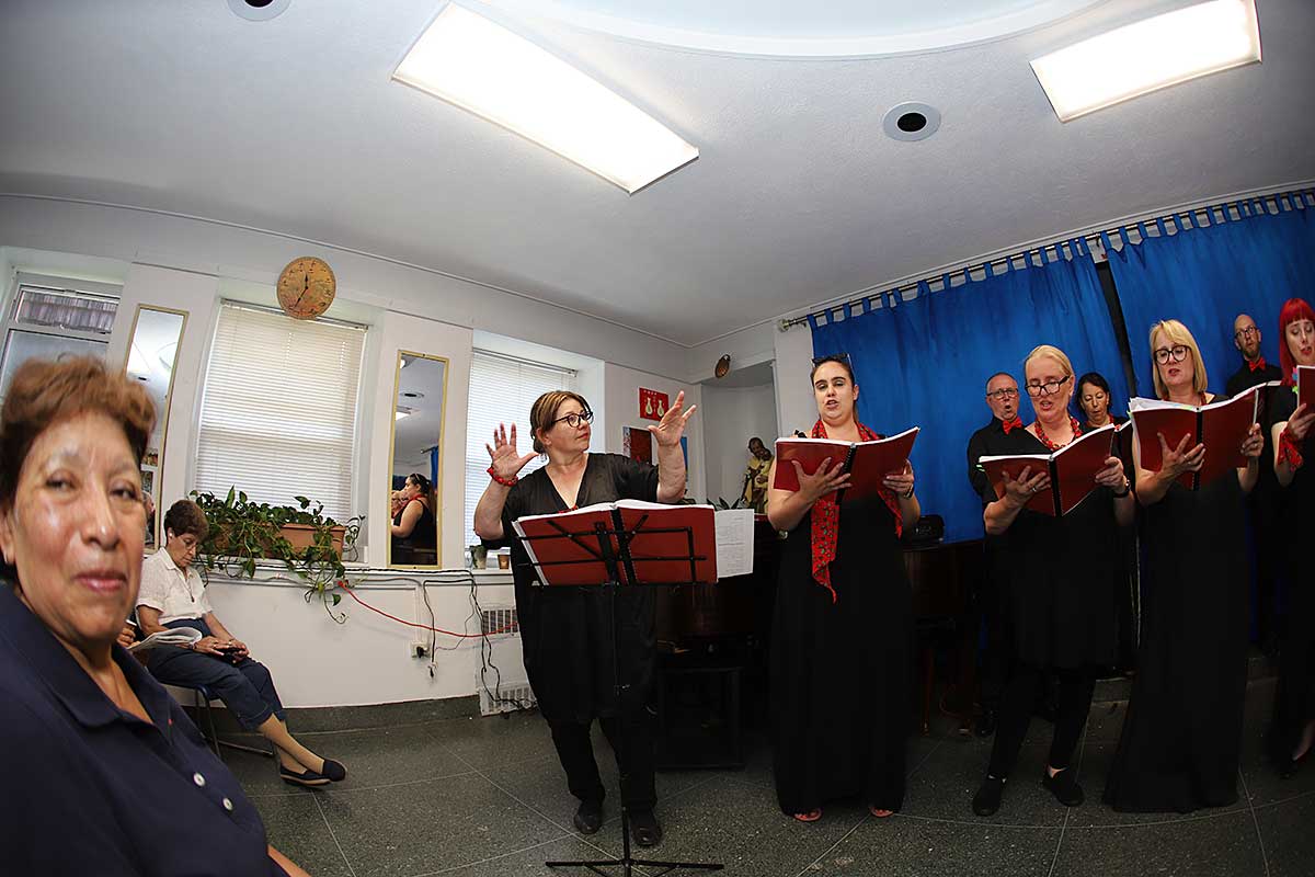 W Northside Senior Center na Williamsburgu chór przedstawił polskie i amerykańskie szlagiery muzyki filmowej oraz przeboje Maryli Rodowicz. Chór wystąpił w 17 osobowym składzie. Dyrygowała, również śpiewając założycielka chóru Beata Borowicz, na fortepianie grał Bartłomiej Łyziński, a zapowiadała z humorem Magdalena Wawrzyniak-Śliwska. Temperament i żywiołowość jakie prezentowała grupa świadczył o radości jaką daje im śpiew. Licznie zgromadzeni seniorzy przyjęli zespół z entuzjazmem, nie obyło się bez bisów.