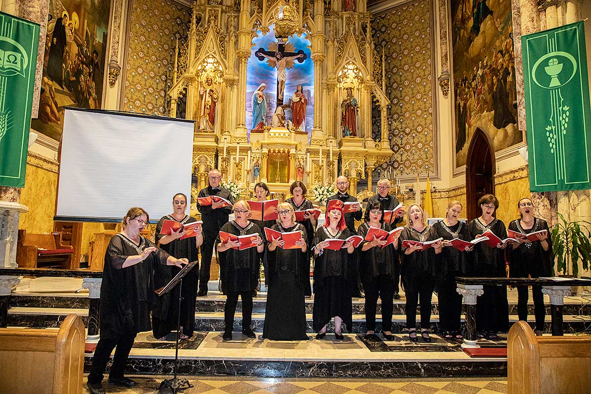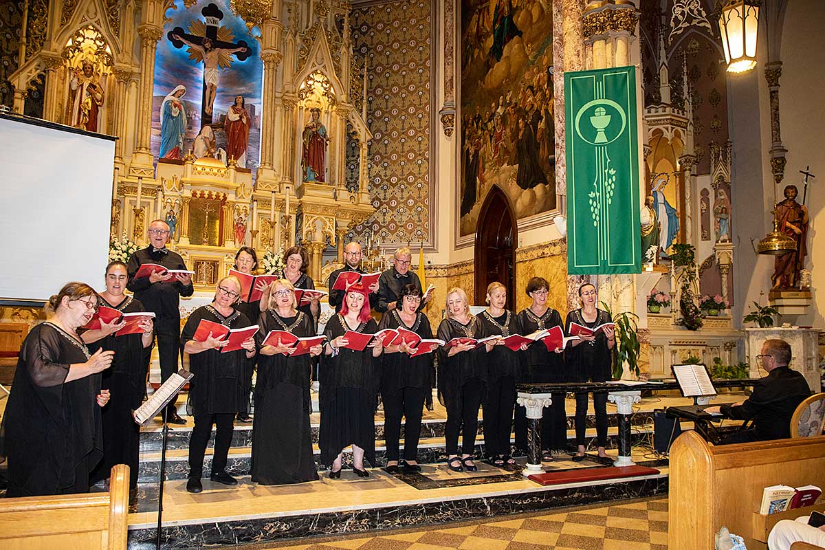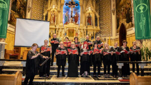 W kościele Św. Stanisława Kostki na Greenpoincie oraz w kościele Św. Stanislawa Biskupa i Męczennika na Manhattanie chór śpiewał w czasie Mszy Św. pieśni liturgiczne. Psalm i Alleluja zaśpiewała pięknym altem Marzena Michałowska. Po mszy chór wystąpił z koncertem. Śpiewali między innymi: gospel,- “Total Praise”, pieśń “Fix You” zespołu Colplay, “Rzekę marzeń” – piosenkę napisaną do filmu “W pustyni i w puszczy” oraz “Shallow”, piosenkę Lady Gaga i Bradleya Coopera z filmu “Star is Born”. Dyrygowała i śpiewała Beata Borowicz, na keyboardzie grał Bartłomiej Łyziński. Tu również słuchacze kilkakrotnie prosili o bisy. Chór reprezentował się wspaniale na tle pięknego ołtarza kościoła Św. Stanisława Kostki.