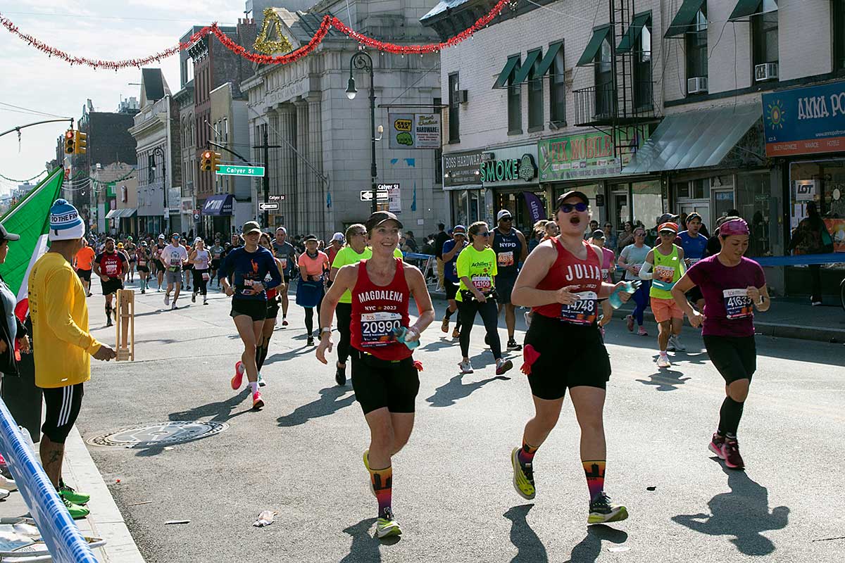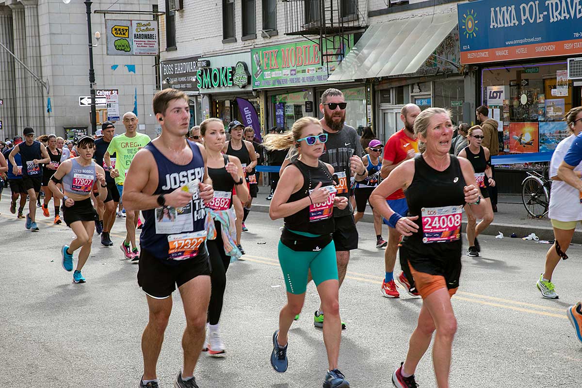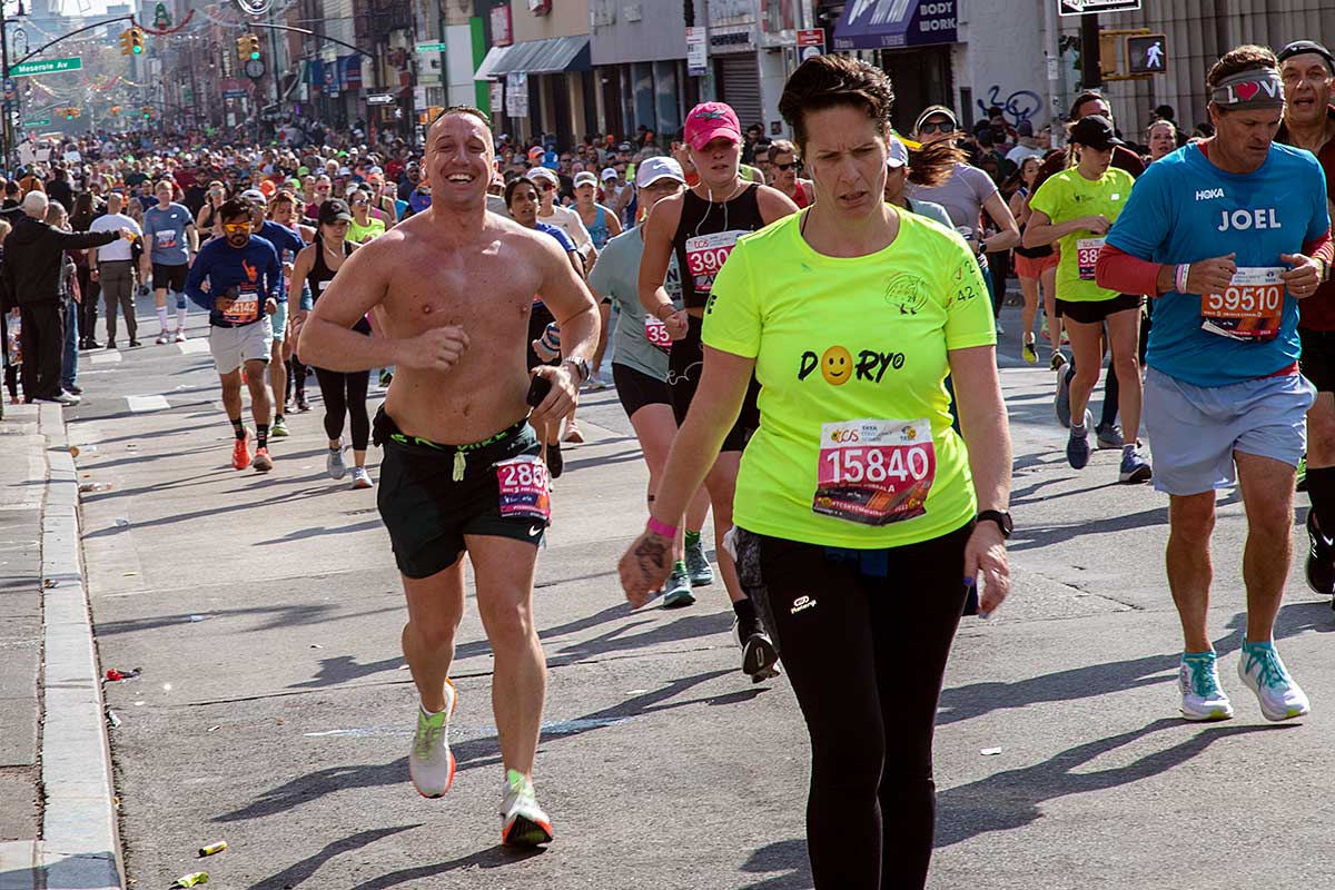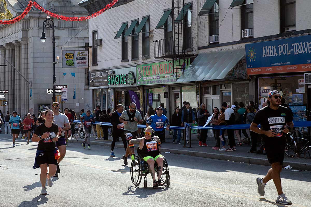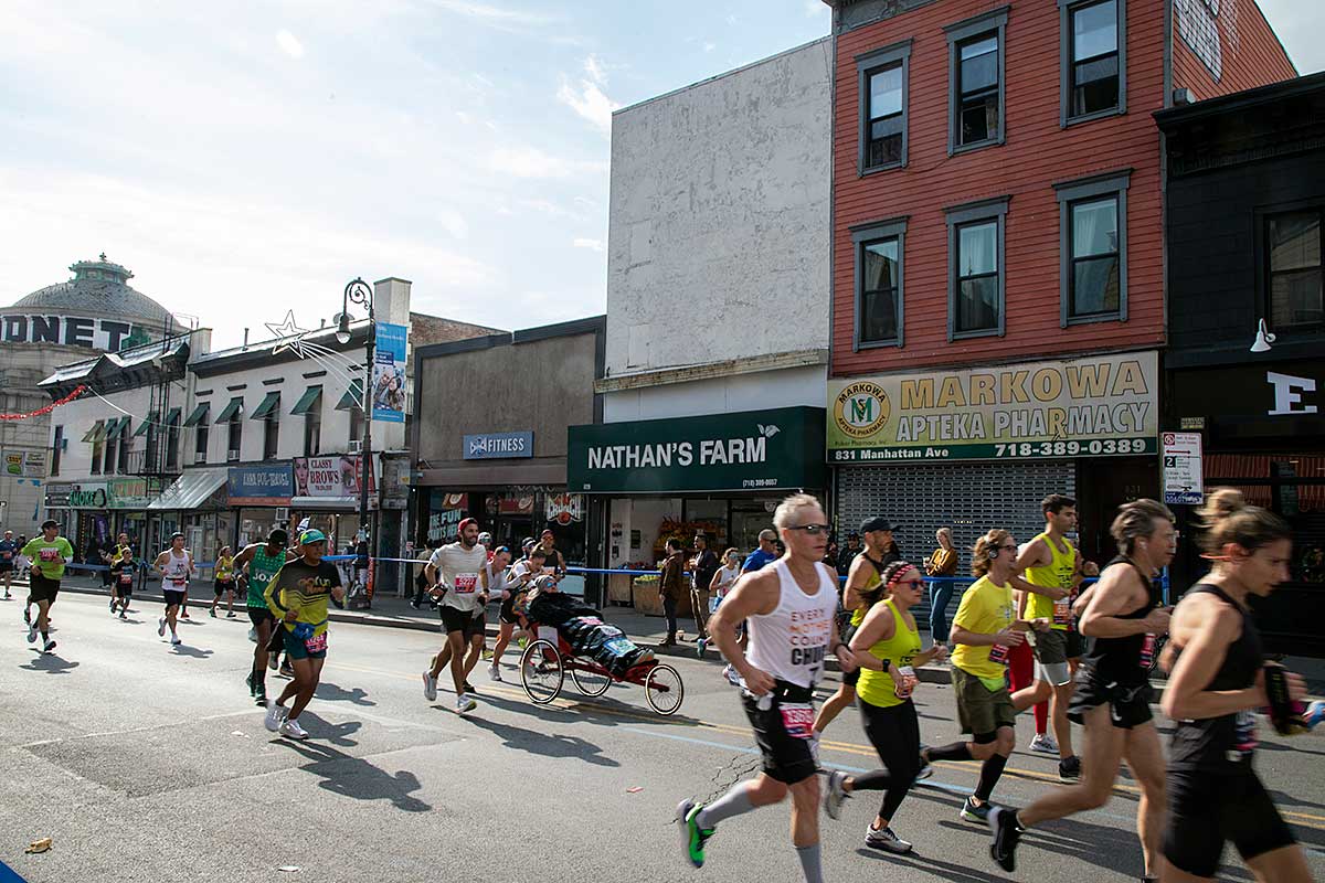 Była muzyka i taniec brzucha na McQuinness Blvd oraz dwaj Polscy Maratończycy, Robert Buczek nr 17036 oraz Kamil Kowalko nr 28659, bez koszulki, zauważeni przed Cafe Riviera na Manhattan Ave na Greenpoincie.