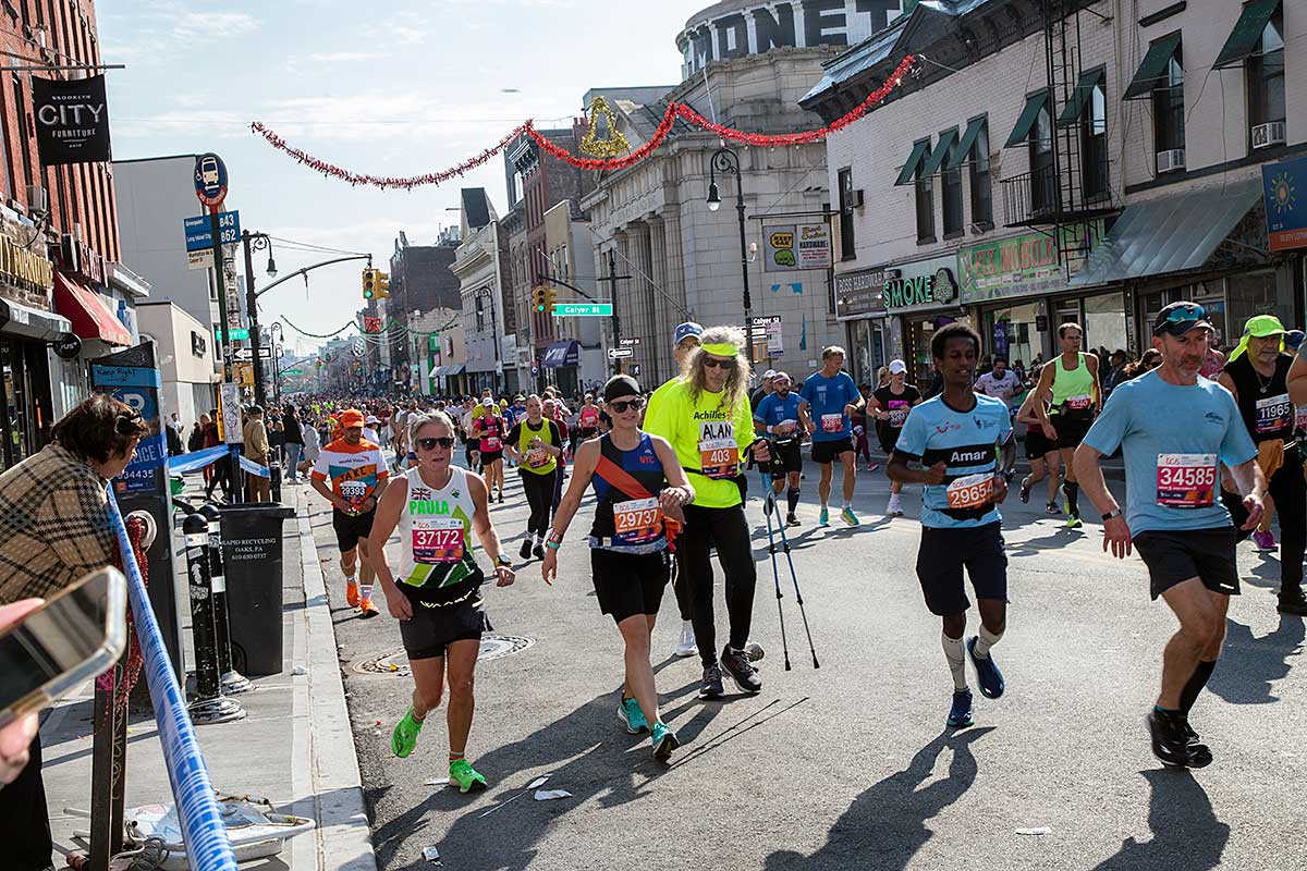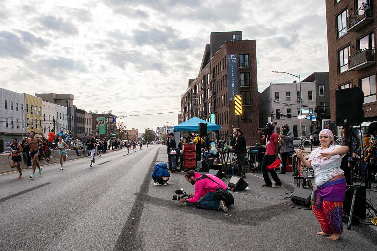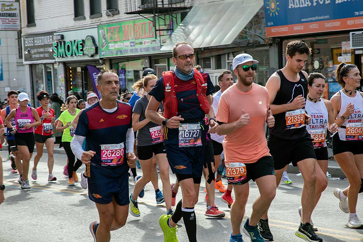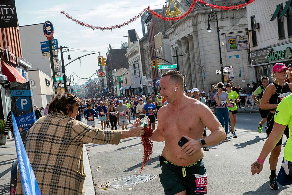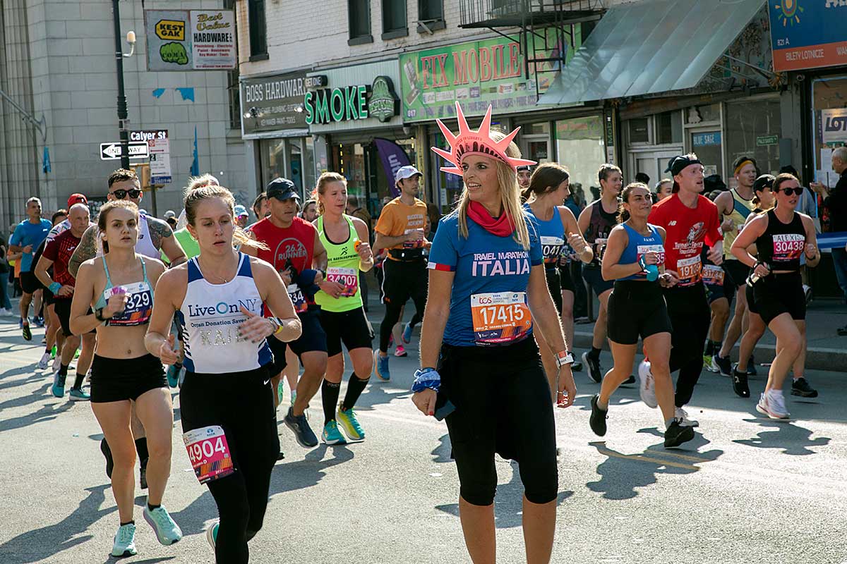 Była muzyka i taniec brzucha na McQuinness Blvd oraz dwaj Polscy Maratończycy, Robert Buczek nr 17036 oraz Kamil Kowalko nr 28659, bez koszulki, zauważeni przed Cafe Riviera na Manhattan Ave na Greenpoincie.