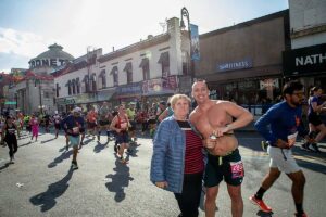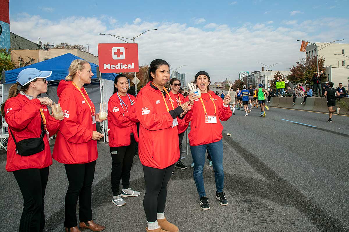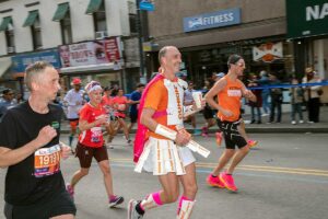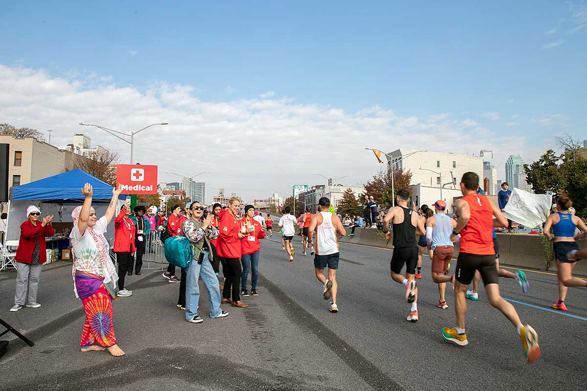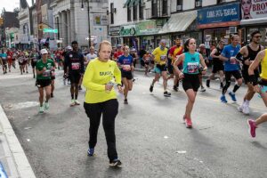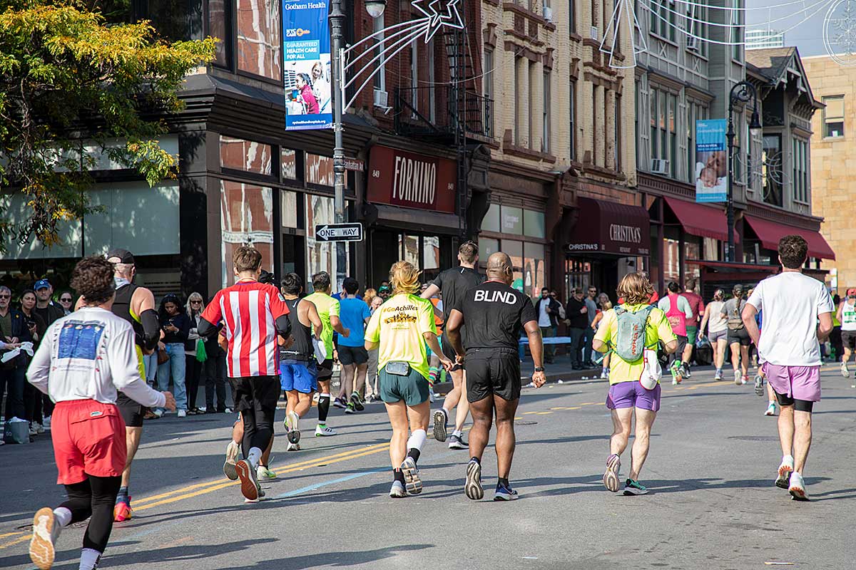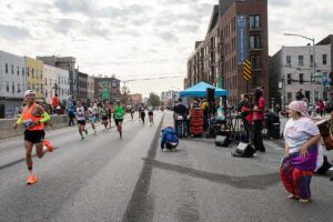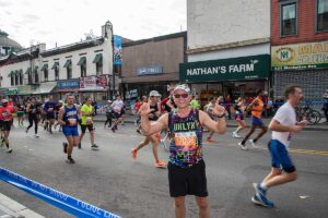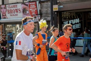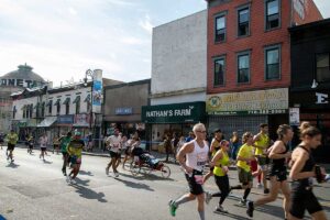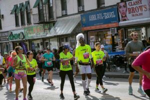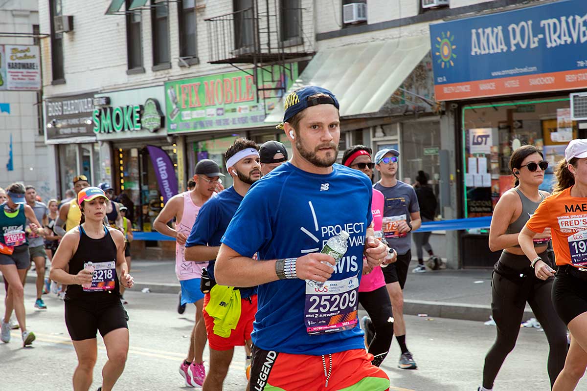 Była muzyka i taniec brzucha na McQuinness Blvd oraz dwaj Polscy Maratończycy, Robert Buczek nr 17036 oraz Kamil Kowalko nr 28659, bez koszulki, zauważeni przed Cafe Riviera na Manhattan Ave na Greenpoincie.
