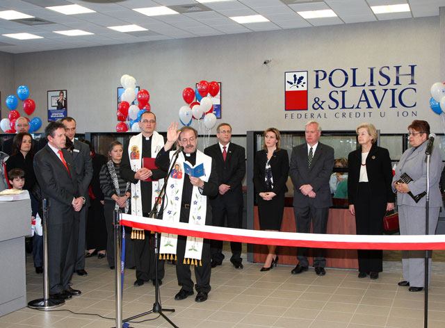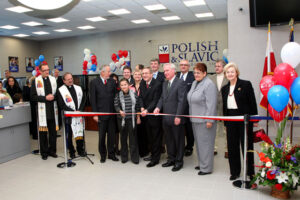 Uroczystość rozpoczęto odegraniem hymnów narodowych Polski i USA. Jak wymaga tradycja, księża z parafii Św. Krzyża na Maspeth – ks. Zendzian i ks. Stasiak poświęcili oddział, a Bogdan Chmielewski, w asyście Rady Dyrektorów i Gości Honorowych, dokonał symbolicznego przecięcia wstęgi.
