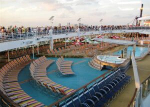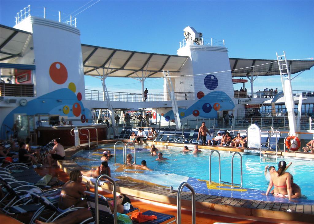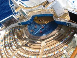 Przez cały czas naszego 5 dniowego rejsu nie czuło się żadnego bujania statku co sprawiało, że czasami myślałam, że jestem w jakimś eleganckim hotelu – resorcie. Ilość różnych atrakcji była tak duża, że praktycznie w ciągu tak krótkiego rejsu nie da się z nich wszystkich skorzystać, a dochodzą do tego jeszcze różnego rodzaju “shows” od kabaretów, przez rewię na lodzie, rewię tanców i skoków do basenu – jak się okazuje najgłębszego pływającego basenu na świecie, a na musicalach skończywszy.