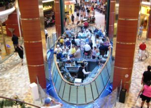 Zacznę od tego, iż najbardziej obawiałam się tłoku przy zaokrętowaniu, czy też później w restauracjach lub w innych miejscach, mając na uwadze, że na okręcie będzie ponad pięć tysięcy pasażerów i ponad dwa tysiące międzynarodowej obsługi wywodzącej się z 71 krajów. Jakże się myliłam. Od samego początku byliśmy z mężem zachwyceni super organizacją i techniką jaką wykorzystano w tym celu, a także uprzejmością obsługi, która była na każdym miejscu i w każdym momencie, nie tylko w czasie zaokrętowania, ale przez cały rejs. Co chwila z moich ust wyrwyało się słowo “wow” na widok kolejnego fragmentu statku czy też kolejnej atrakcji.