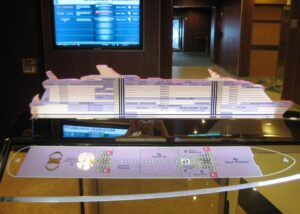 Cały statek jest nie tylko luksusowy i nowoczesny, ale nade wszystko jest tak skonstruowany, aby służyc w każdej swojej części dla relaksu i wszelkich wygód dla podróżnych. Wszędzie też były dokładne informacje i plany na elektronicznych tablicach w 7 językach na wypadek, gdyby się ktoś zagubił pomiędzy 17 pokładami psażerskimi i nie mógł trafić do swojej kabiny. Wszędzie przepiękny i gustowny wystrój wnętrza, wsparty dyskretnym kolorowym oświetleniem. A same kabiny estetycznie, wykończone i bardzo funkcjonalne z nieprawdopobnie wygodnym łóżkiem i delikatną pościelą.
