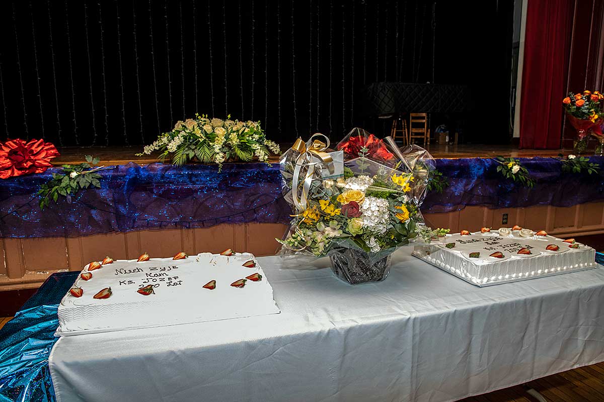 Na zakończenie uroczystości ksiądz zdmuchnął świeczki na olbrzymim torcie z Cafe Riviera i wszyscy zostali poczęstowani.