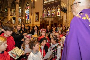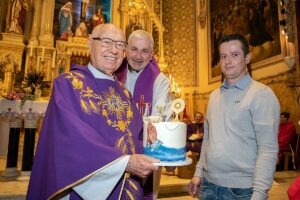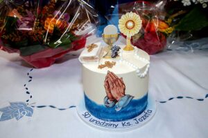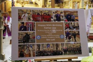 Wszystkie te organizacje składały Jubilatowi życzenia i kwiaty a dzieci laurki. Ksiądz nie krył wzruszenia spotykającą go życzliwością i specjalnie napisaną przez Małgorzatę Dziekońską, Dyrektor Dydaktyczną Polskiej Szkoły Ks. Wincentego Pallottiego na Ridgewood, piosenkę – przedstawiającą życiorys księdza Józefa, którą śpiewali ministranci z rodzicami, dostał od nich też ulubione galaretki.