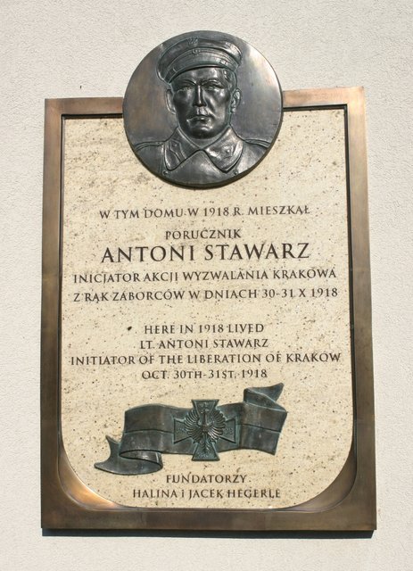 – Tablica ta pokazuje, że jesteśmy gotowi czcić bohaterów, dzięki którym możemy żyć w wolnym kraju. Wolność do Krakowa przyszła właśnie z Podgórza. To w tej dzielnicy – będącej do 1915 r. odrębnym miastem – 31 października 1918 r. porucznik Antoni Stawarz rozbroił żołnierzy austriackich stacjonujących w podgórskich koszarach. Wydarzenie to uznaje się za przełomowe w drodze do odzyskania wolności przez Kraków. Potem żołnierze Stawarza przeszli na Rynek Główny, bezkrwawo rozbroili kolejnych zaborców, wynieśli polską flagę i ogłosili Kraków wolnym miastem – powiedział prezydent, Jacek Majchrowski, który odsłonił tablicę.