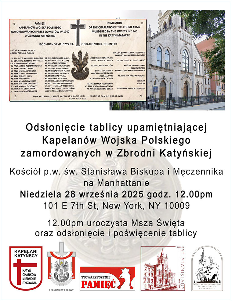 O godz. 12.00pm zostanie odprawiona uroczysta Msza Święta, którą koncelebrował będzie postulator sprawy beatyfikacji Kapelanów Katyńskich ks. prałat dr Zbigniew Kępa, płk Straży Granicznej. Po uroczystości Ojcowie Paulini zapraszają na obiad organizowany przez Komitet Parady Pułaskiego.