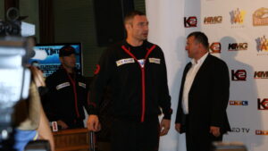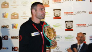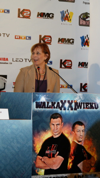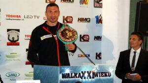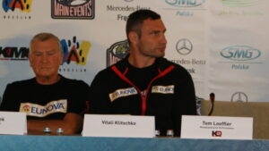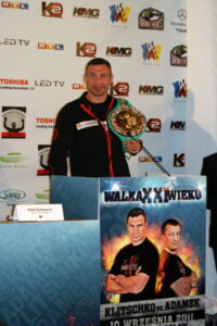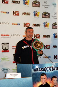 Witalij Kliczko – trzymając pas mistrzowski – powiedział po polsku – Dzień dobry państwu. Potem mówił już po angielsku: