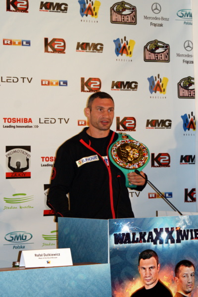 – Cieszę się, że jestem we Wrocławiu. Wczoraj widziałem już stadion i cieszę się, że jest już prawie gotowy. Adamek jest szybki, dobry technicznie, ta walka nie będzie dla mnie łatwa. Mam dla niego specjalne niespodzianki, bo to specjalny przeciwnik. Jakie – zobaczycie w sobotę – Jestem gotowy, by pokazać moje umiejętności. To nie będzie walka, to będzie bitwa – zakończył Kliczko.