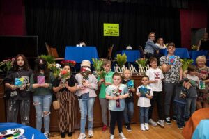Były też atrakcje dla dzieci, własnoręcznie robione prezenty dla Mamy, malowanie obrazków na płótnie i szkle, robienie bukietów z kwiatów, wszystko to pod okiem Ewy Marii Węglarz.