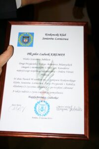 Płk pilot Ludwik Krempa jest honorowym członkiem Społecznego Komitetu Budowy Pomnika kpt Mieczysława Medweckiego.