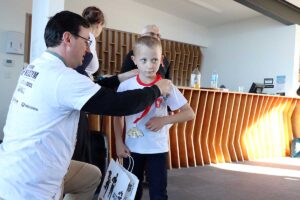 Bieg odbył się przy wspaniałej, słonecznej pogodzie na tradycyjnym dystansie 1963 metrów, poprowadzonym przez nadmorski las, a potem wzdłuż pięknej plaży. Po biegu jego uczestnicy podpisali specjalną kartkę okolicznościową, którą będziemy chcieli przekazać naszemu Bohaterowi – Pani Major Mireckiej-Loryś.