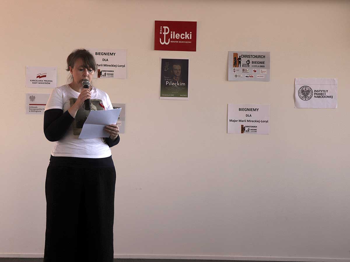 Następnie głos zabrał Pan Konsul Maksymilian Zych, potem przedstawiono sylwetkę Bohatera naszego biegu – Pani Major Marii Mireckiej-Loryś i kolejno odczytano przesłany z Polski specjalnie na ta okazję, list Sekretarza Stanu, Pełnomocnika Rządu do spraw Polonii i Polaków za Granicą – Pana Jana Dziedziczaka.