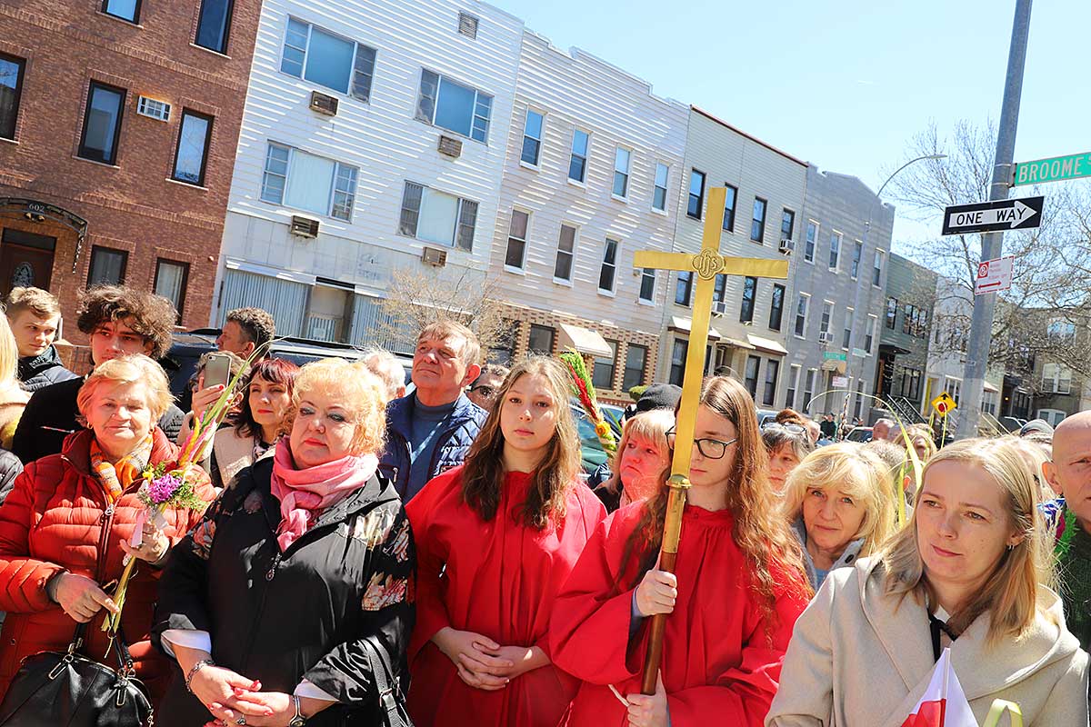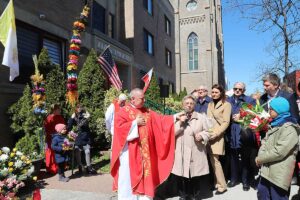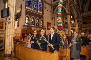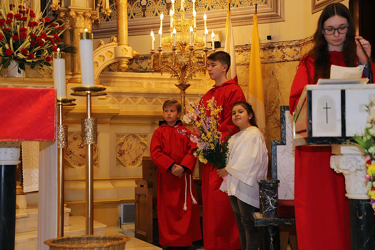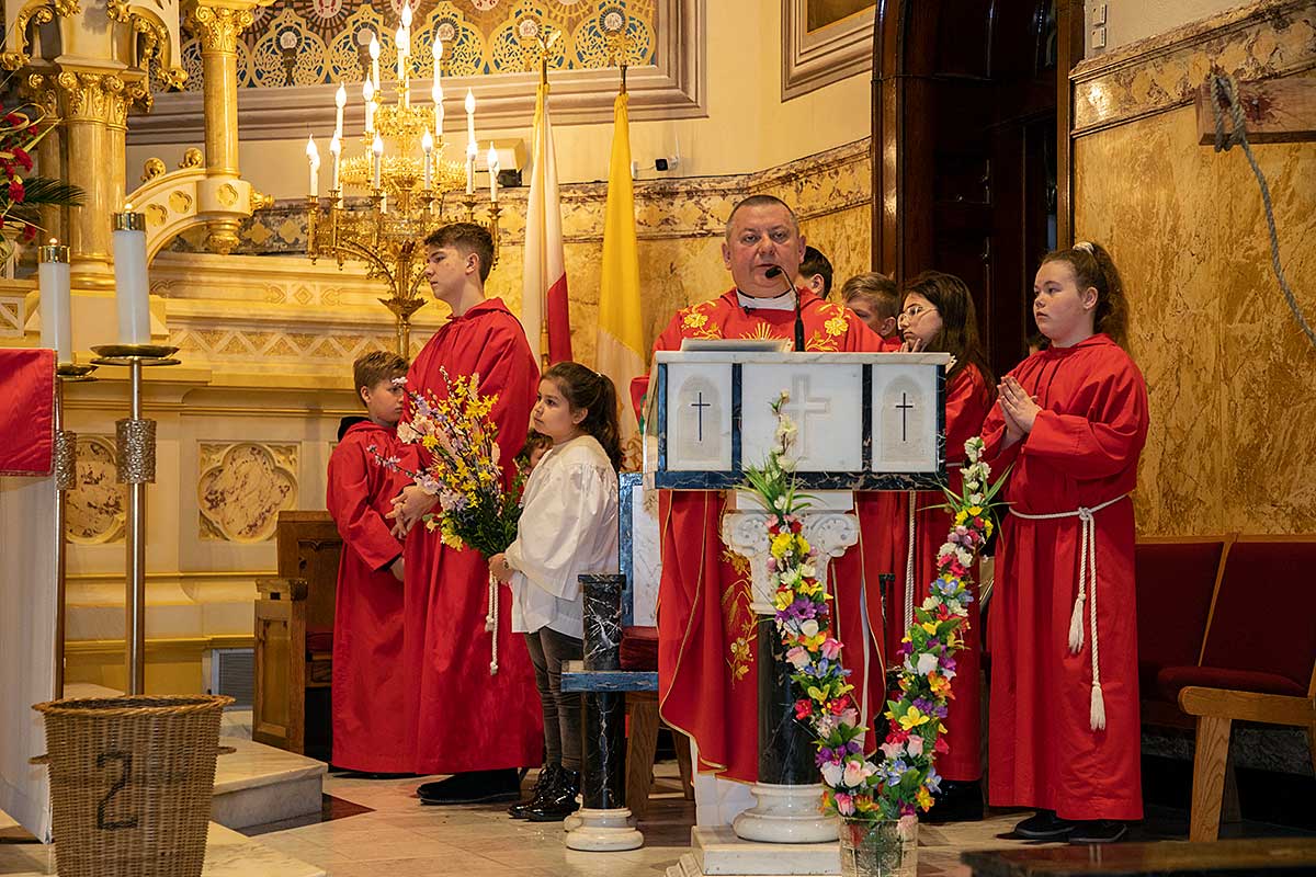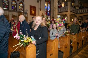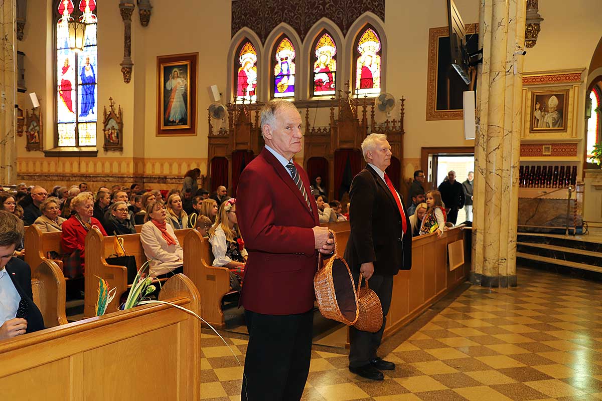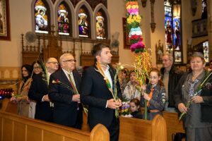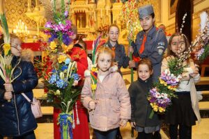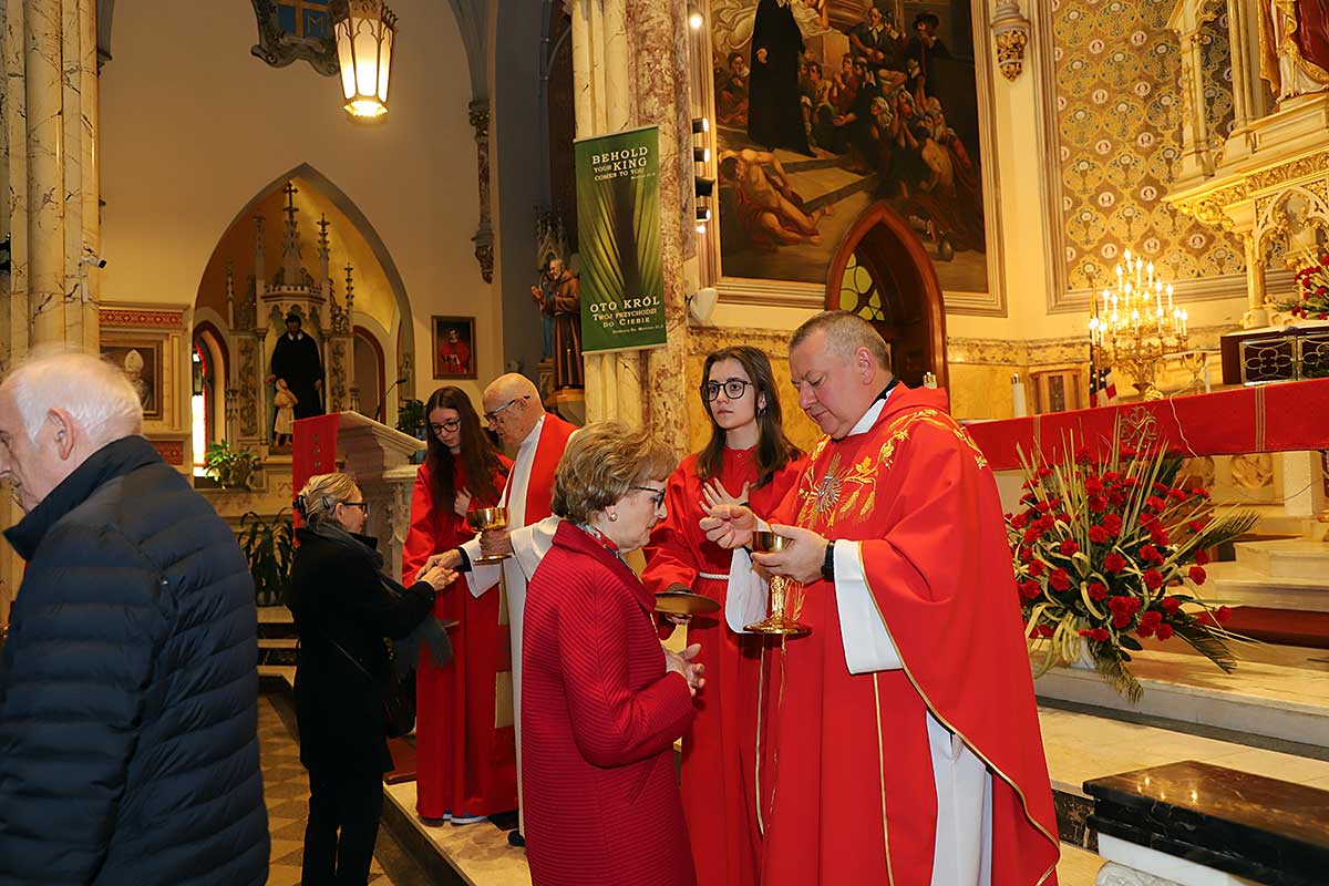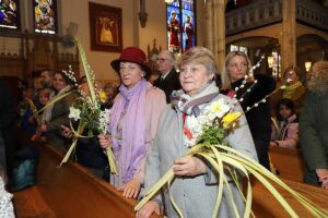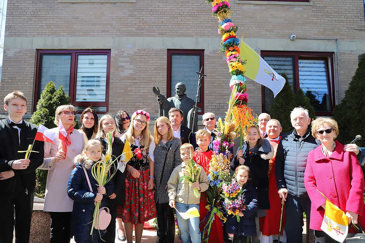 Mszę Św. koncelebrował proboszcz ksiądz Grzegorz Markulak, a czytania i psalmy wykonali ministranci. Dzieci przyniosły własnoręcznie przygotowane palmy wielkanocne i po mszy przeprowadzono konkurs na najwyższą i najpiękniejszą palmę. Jurorami byli: Konsul Generalny – Adrian Kubicki, Bogdan Chmielewski i Anna Branas z PSFUK. Wyłoniono zwycięzców: Emilia Idec (najwyższa palma) i Alan Boguski (najpiękniejsza), a dodatkowo jurorzy ufundowali nagrodę Konsula i Unii Kredytowej: tu wyłoniono dwoje zwycięzców: najmłodsza z uczestniczek Sophia Klusek oraz Gabriel Drozd za palmę w papieskich i polskich barwach.