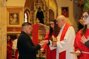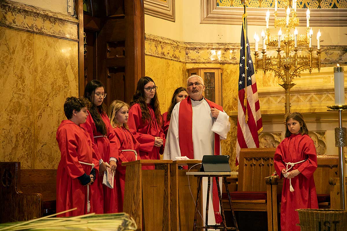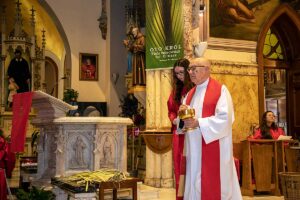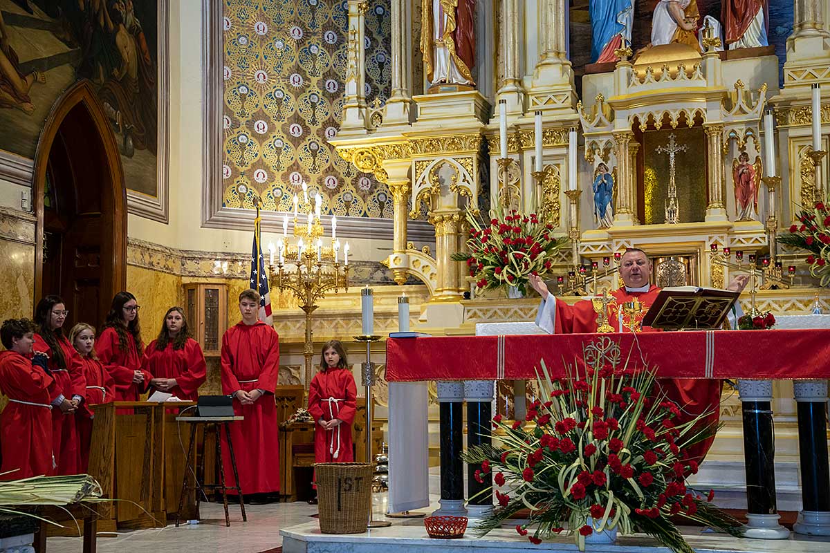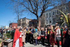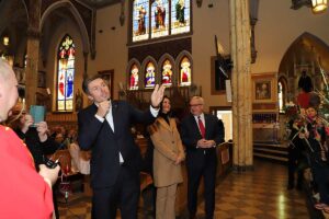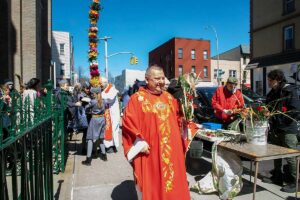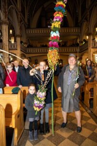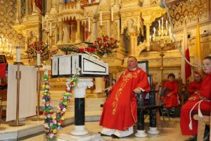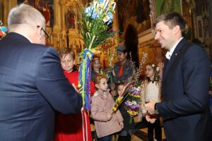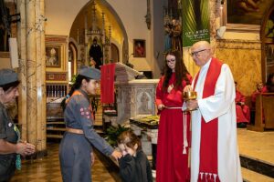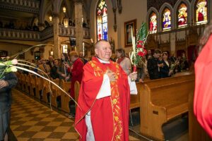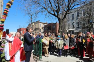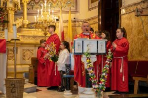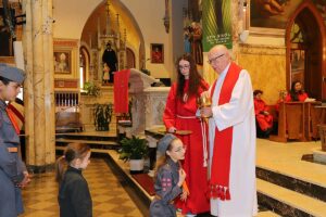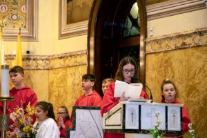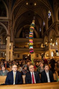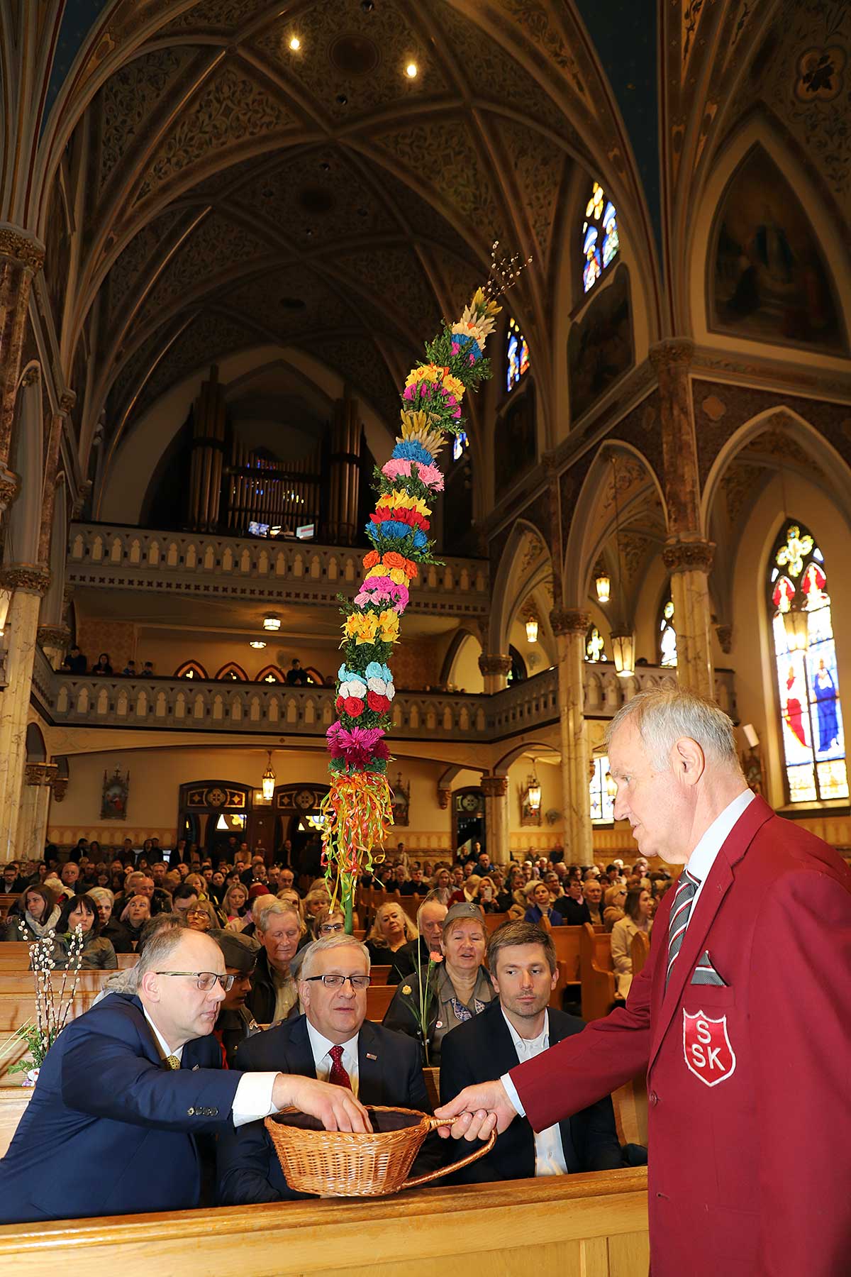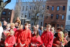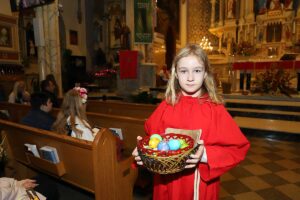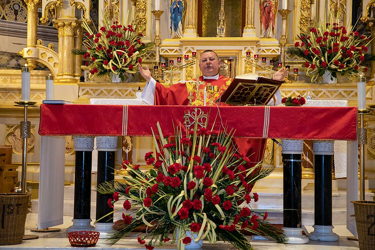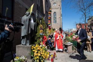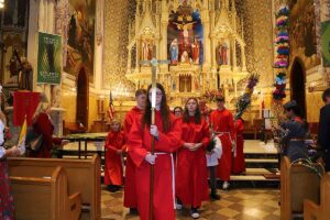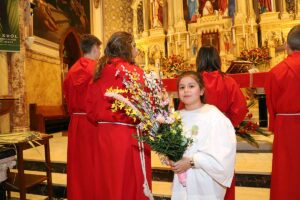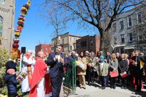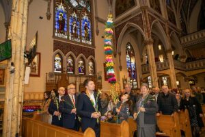 Mszę Św. koncelebrował proboszcz ksiądz Grzegorz Markulak, a czytania i psalmy wykonali ministranci. Dzieci przyniosły własnoręcznie przygotowane palmy wielkanocne i po mszy przeprowadzono konkurs na najwyższą i najpiękniejszą palmę. Jurorami byli: Konsul Generalny – Adrian Kubicki, Bogdan Chmielewski i Anna Branas z PSFUK. Wyłoniono zwycięzców: Emilia Idec (najwyższa palma) i Alan Boguski (najpiękniejsza), a dodatkowo jurorzy ufundowali nagrodę Konsula i Unii Kredytowej: tu wyłoniono dwoje zwycięzców: najmłodsza z uczestniczek Sophia Klusek oraz Gabriel Drozd za palmę w papieskich i polskich barwach.