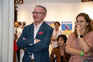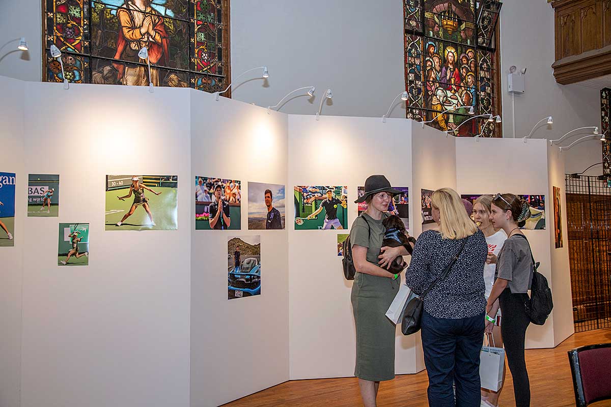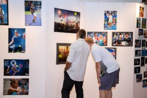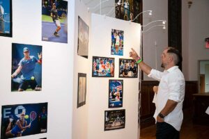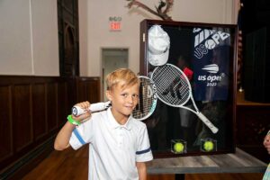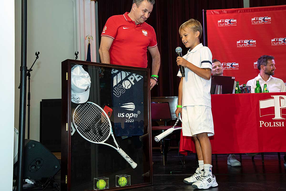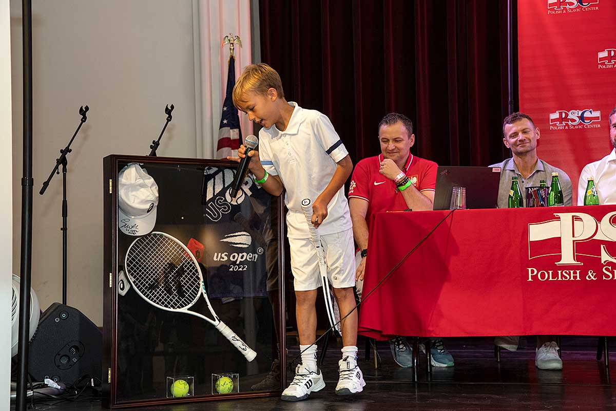 Na wystawie młodziutki 8-letni gracz tenisa Patrick Okla zaprezentował oryginalną rakietę Igi Świątek, jej czapkę i piłki z wygranego przez nią US Open w 2022 roku, wszystko pięknie oprawione.