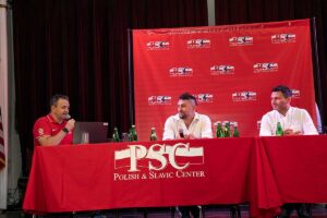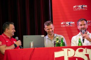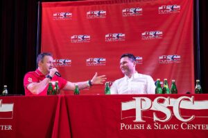 Następnie spotkanie poprowadził Tomasz Moczerniuk, korespondent “Przeglądu Sportowego” i Polskiej Agencji Prasowej przeprowadzając krótkie wywiady z przybyłymi gośćmi. Byli to: