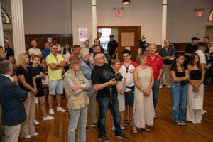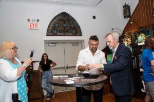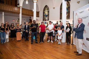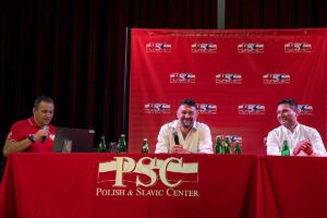 Wystawa została połączona ze spotkaniem z gośćmi, znanymi sportowcami w różnych dziedzinach i ludżmi związanymi ze sportem. Wydarzenie to zorganizowane było przez Pawła Gąsiora, prezesa Polish American Golf Association wraz z Dyrektor Wykonawczą Centrum Polsko-Słowiańskiego, Agnieszką Granatowską pod honorowym patronatem konsula generalnego Rzeczpospolitej Polskiej w Nowym Jorku Adriana Kubickiego. Na początek Dyrektor Wykonawcza CPS powitała oficjalnych gości: Ambasadora Krzysztofa Szczerskiego, Stałego Przedstawiciela RP przy Narodach Zjednoczonych w Nowym Jorku ; Pana Przemysława Balcerzyka – Szefa Wydziału Politycznego oraz wicekonsula Stanisława Starnawskiego.