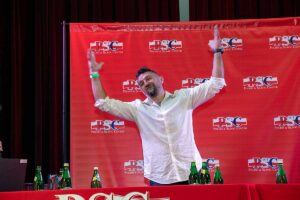 • Dariusz Szpakowski – legendarny komentator sportowy. Dariusz Szpakowski ukończył AWF, od młodości interesował się sportem. W 1976 został przyjęty do pracy na etacie w Polskim Radiu. Jego nauczycielami radiowej profesji byli Bohdan Tomaszewski i Bogdan Tuszyńskim, a wymowy uczył natomiast Gustaw Holoubek. Od tergo roku za pośrednictwem radia, a później telewizji relacjonuje wydarzenia sportowe, przede wszystkim piłkarskie, w tym igrzyska olimpijskie, mistrzostwa świata, mistrzostwa Europy i Ligę Mistrzów. W latach 1980–2021 komentował wydarzenia z siedemnastu igrzysk olimpijskich (łącznie letnich i zimowych. Po śmierci Jana Ciszewskiego w 1982 stał się najważniejszym i najpopularniejszym komentatorem sportowym w Telewizji Polskiej. Komentarze Szpakowskiego, oprócz oryginalnej barwy głosu, charakteryzują się dużą dynamiką, dodającą widowisku na atrakcyjności. Prócz futbolu komentował też inne dyscypliny: hokej na lodzie, kajakarstwo i wioślarstwo, okazjonalnie również koszykówkę, boks, kolarstwo szosowe i torowe oraz pływanie. Bywał gospodarzem studia podczas meczów piłki ręcznej i skoków narciarskich. Jako kibic piłkarski sympatyzuje z Legią Warszawa. Rekreacyjnie uprawia wędkarstwo. Brał udział w wielu filmach, grając komentatora sportowego. W czasie wywiadu również zaprezentował swój “komentatorski głos” ku aplauzie widzów.