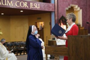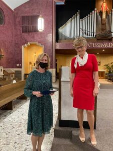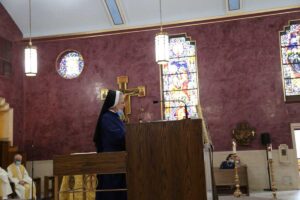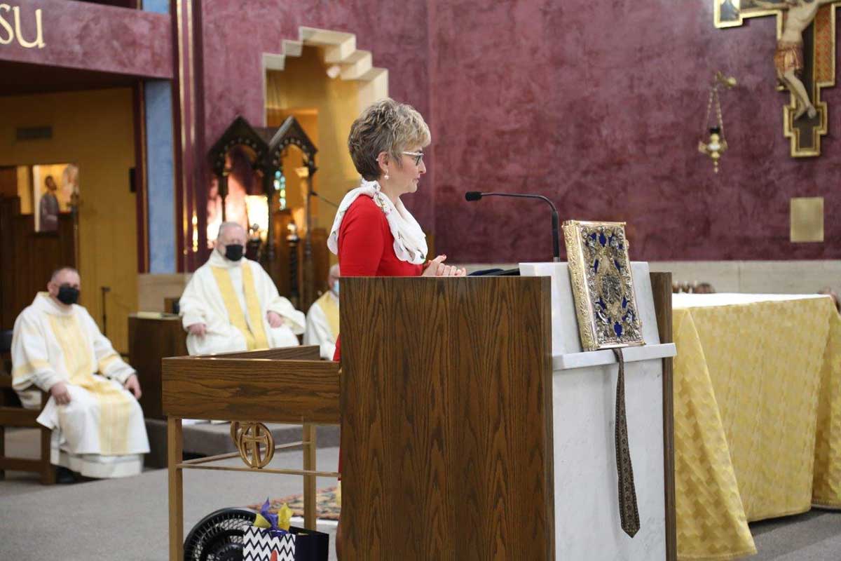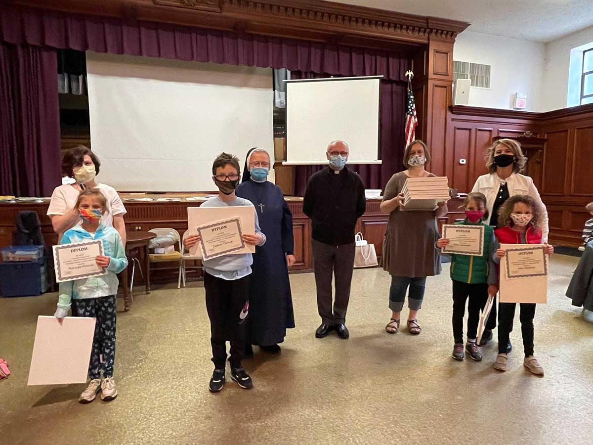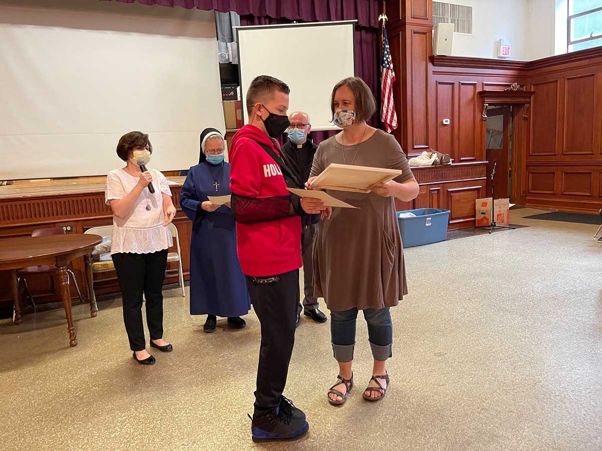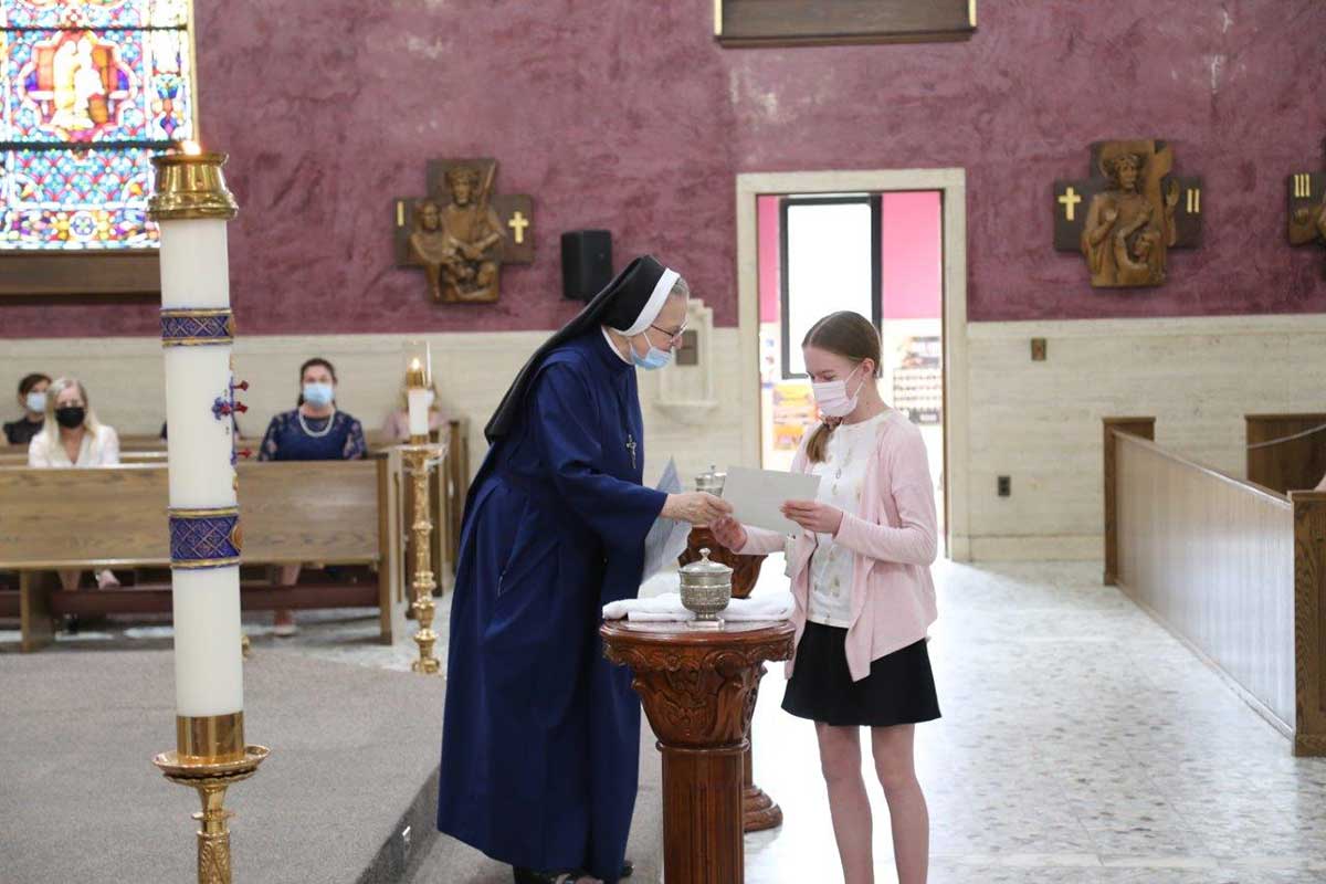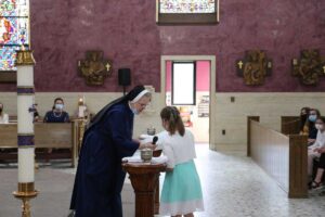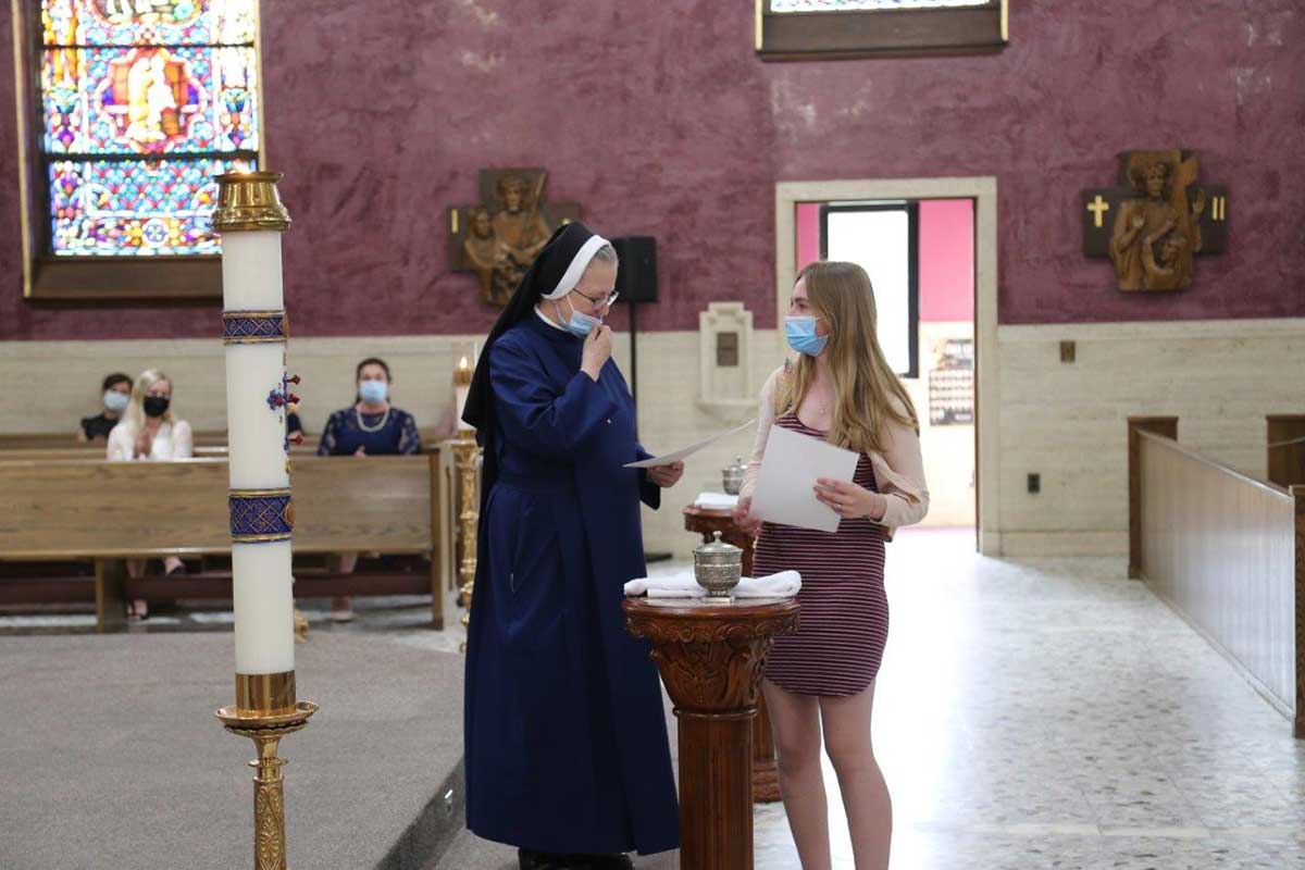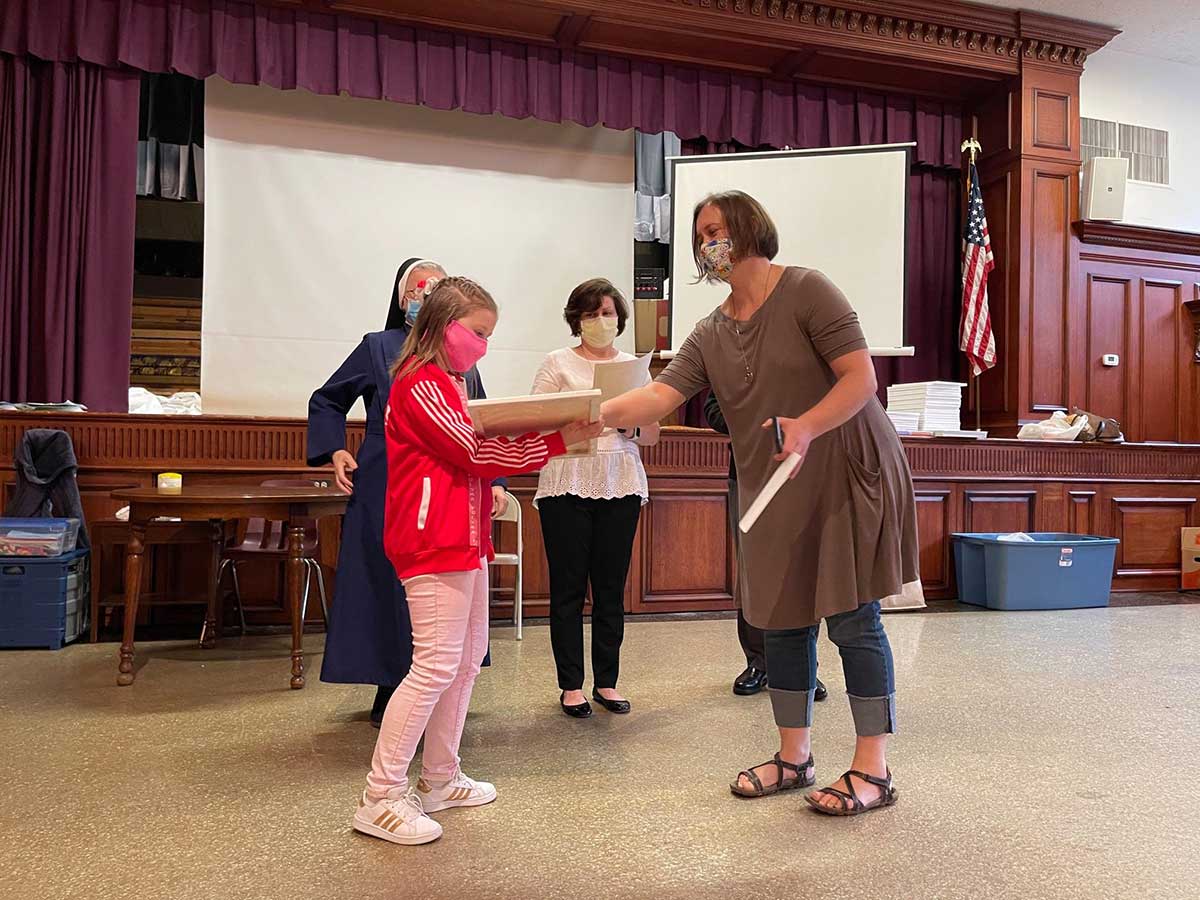 Siostra Jadwiga Zaremba, obecny dyrektor szkoły przywitała serdecznie Panią prezes Marię Pażdzior, Prezesa Polskich szkół na stan New Jersey oraz Pensylwanię oraz wyraziła wdzięczność pod adresem Pani Prezes CPSD Doroty Andraki za opiekę nad naszą szkołą w okresie pandemii. Pani Maria Pażdzior, wręczyła dyplomy zasłużonym Nauczycielom . Siostra Jadwiga w słowie powitalnym podziękowała Księdzu Proboszczowi za jego troskę o szkołę a także Mederatorowi szkoły Ks. Tadeuszowi Mierzwa, PhD, za jego współpracę z gronem pedagogicznych oraz pomoc szkole, a także skierowała słowa wdzięczności pod adresem Rodziców za ich zaufanie do naszej szkoły wyrażone w zapisywaniu swoich synów i córek do naszej szkoły a także wyraziła radość z licznej obecności uczniów na jubileuszowej uroczystości szkoły.