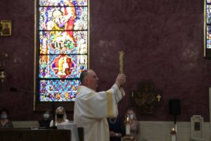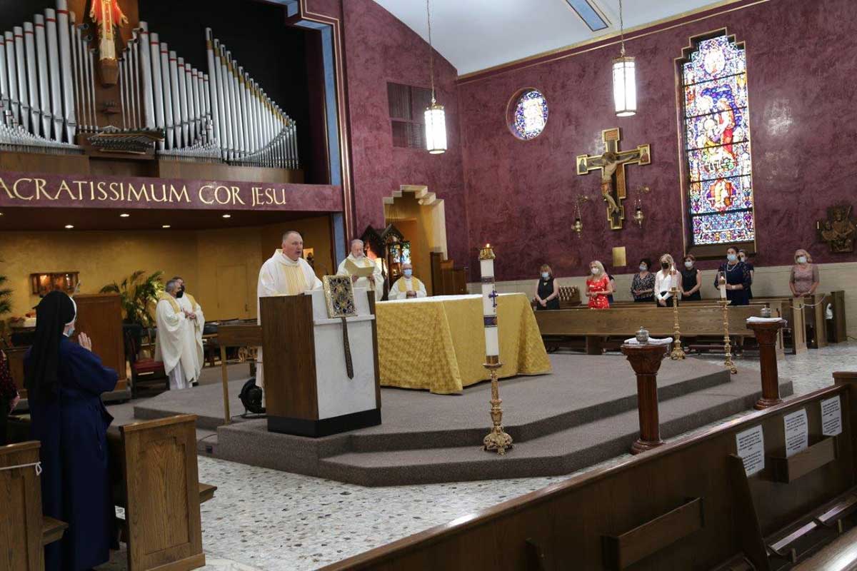 Jubileuszowe obchody zainagurowane zostały uroczystą Mszą św. koncelebrowaną pod przewodnictwem Ks. Kanonika Feliksa Marciniaka, współzałożyciela szkoły, a obecnie proboszcza parafii Najświętszego Serca Jezusowego w Wallington razem z kapłanami: ks. Stevenem D’Andrea – wikariuszem parafii, ks. Tadeuszem Mierzwą PhD – moderatorem szkoły, ks. dr. Antonym Mastroeni – profesorem Seton Hall University oraz diakonem Krzysztofem Pawlikiem. Podczas homilii ks. Tadeusz przybliżył wiernym historię powstania szkoły, a także zachęcał młodzież oraz dzieci do kultywowania polskich tradycji w szkole i poza nią. Wyraził też wdzięczność wobec tych, którzy byli inicjatorami powstania szkoły.
