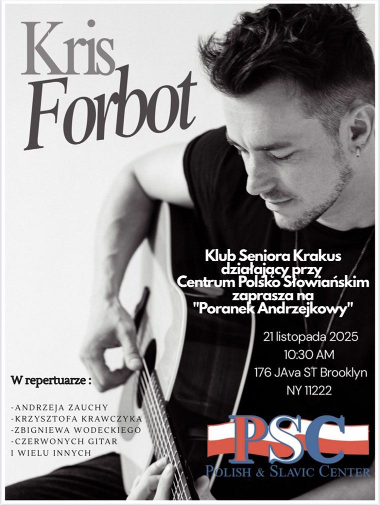 21 listopada, o godzinie 10:30 am, w “Poranku Andrzejkowym” występi Kris Forbot.