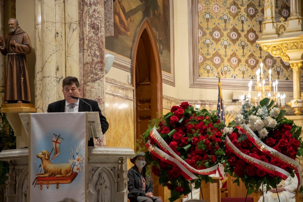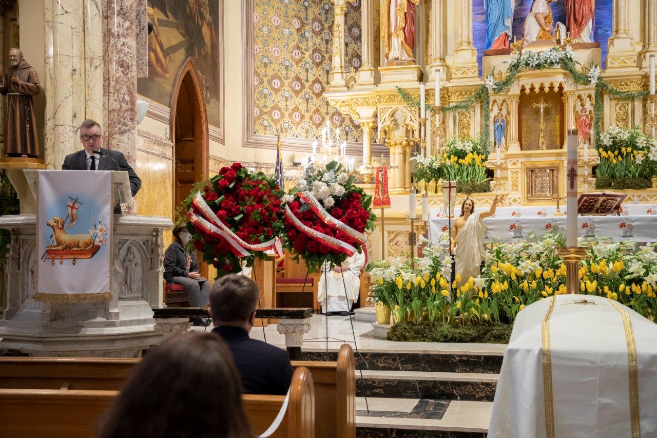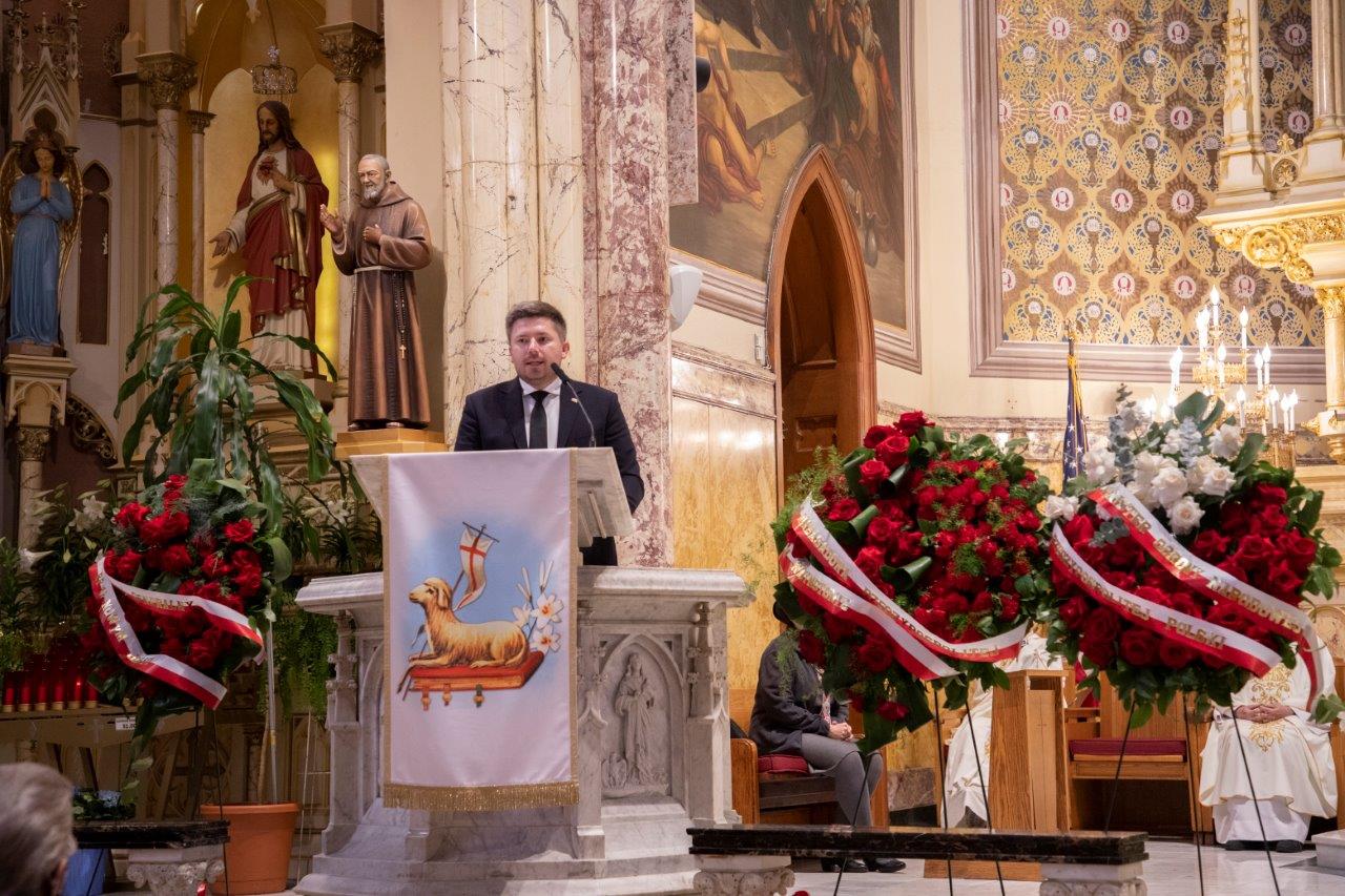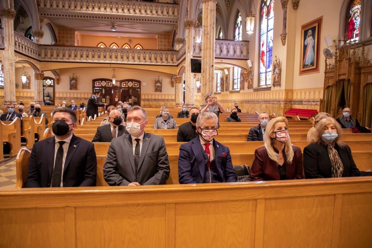 Mszę koncelebrowali: proboszcz ksiądz Marek Sobczak, ksiądz Józef Szpilski oraz proboszcz parafii św. Kazimierza w Newarku, Naczelny Kapelan SWAP-u ksiądz kanonik Andrzej Ostaszewski, a piękną oprawę muzyczną przygotował chór Angelus pod dyrekcją Izabeli Grajner-Partyki.