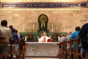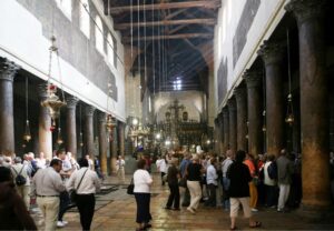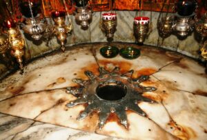 Jakże odmienna sceneria towarzyszyła nam, gdy nocą chodziliśmy ulicami Betlejem. Jakże inaczej wyglądała “szopka betlejemska”. Jednak te dwa obrazy cudownie się dopełniały, odkrywając przed nami ogromne otchłanie tajemnicy zbawienia. Nasze wigilijne przeżycia osadzały się mocno na fundamencie twardej skały z Groty Narodzenia. Bóg, który narodził się tutaj dwa tysiące lat temu ciągle do nas przychodzi, aby się narodzić w naszym sercu. Niektórzy z pielgrzymów zapalali w Grocie Narodzenia świece, a później po wyjściu gasili je i zabierali do swoich rodzinnych domów, aby gdy przyjdzie czas postawić je na wigilijnym stole. Uroczyście zapalona stawała się wymownym symbolem pragnienia, aby światło, które zapłonęło ponad