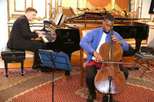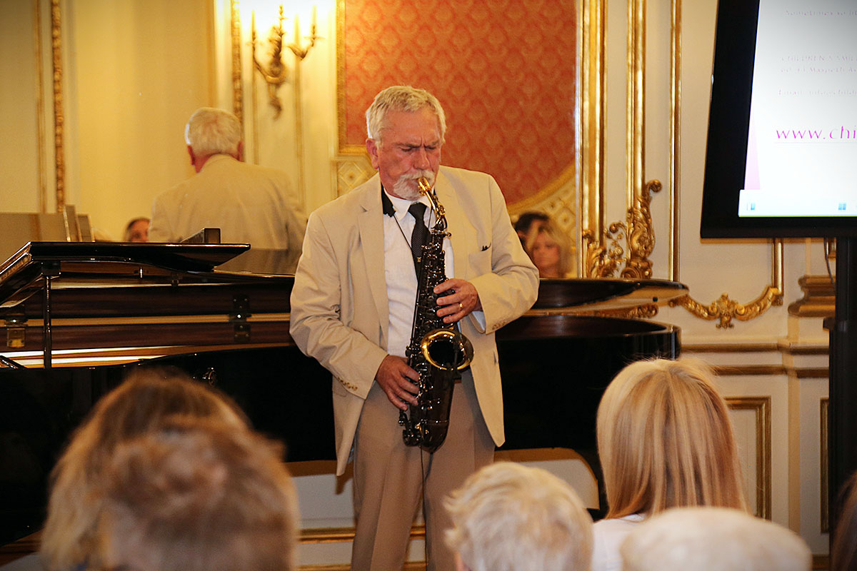 W części artystycznej jako pierwszy wystąpił pianista i zarazem jeden z dyrektorów Children’s Smile Foundation Nicholas Kaponyas, któremu towarzyszył wiolonczelista Diallo Boubacar. Wspólnie zaprezentowali “Sonatę wiolonczelową d-moll” Claude’a Debussy’ego. Z recitalem wystąpił także znany saksofonista jazzowy Krzysztof Medyna, który wyknał kilka znanych evergreenów m.in.: “Traveling Blues” Dave’a Brubecka, “Pod Papugami” i “Płonącą stodołę” z repertuaru Czesława Niemena, “Ludzkie gadanie” Seweryna Krajewskiego oraz “Take Five” Paula Desmonda. Artyści zostali nagrodzeni gromkimi brawami. Po ich występie wszyscy zostali zaproszeni na poczęstunek, podczas którego w konsularnych kuluarach, przy lampce wina, można było porozmawiać na różne tematy, a przede wszystkim złożyć donację.