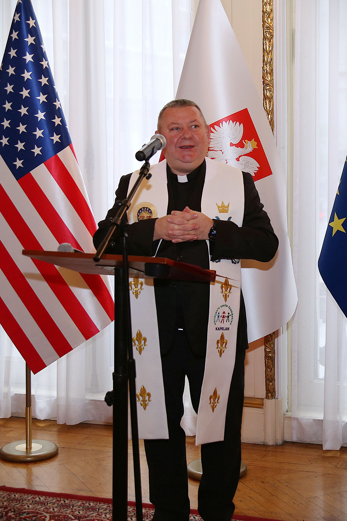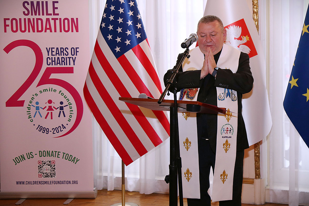 Część oficjalną rozpoczęła i prowadziła prezes fundacji Joanna Gwóźdź, która po powitaniu uczestników i gości dobroczynnej imprezy przekazała głos kapelanowi Children’s Smile Foundation. Ks. Grzegorz Markulak udzielił wszystkim zebranym okolicznościowego błogosławieństwa, a także wyraził słowa wdzięczności za udział w dobroczynnym spotkaniu. “Dziękujemy, że tak liczne przybyliście na nasze wydarzenie i zechcieliście z nami pobyć, porozmawiać i wesprzeć działania fundacji oraz dzieci chorych, biednych, czy też będących w jakiejkolwiek potrzebie. Za to wasze szlachetne serce bardzo dziękujemy i jesteśmy wdzięczni, a nagrodą dla każdego z was niech będzie błogosławieństwo płynące z nieba” — podkreślił kapłan.