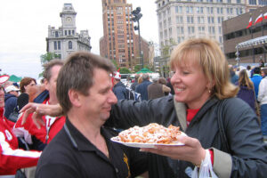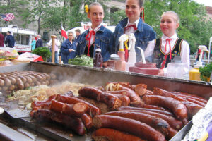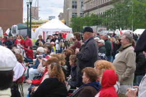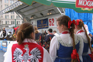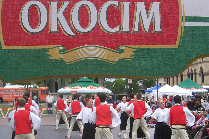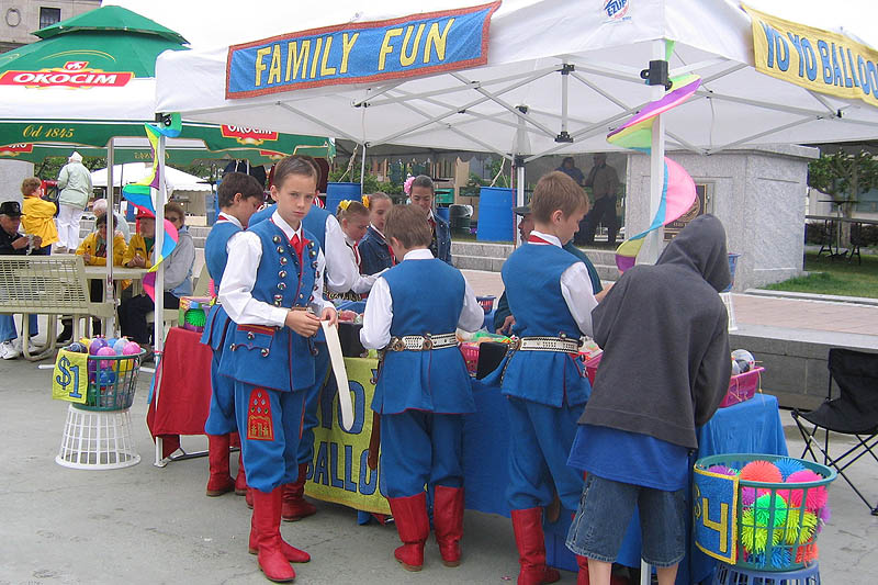 What is a Polish Festival without the delicacies from Poland? Seven Restaurants served food that included Polish kielbasa, pierogi golabki and real “American” food like pit barbecue. The Syracuse Polish Community Home, a festival sponsor, kept people warm with coffee, tea and homemade paczki. Besides the Polish flags flying everywhere, the white and green colors of Okocim umbrellas were seen on the grounds. Stawski Imports and Stawski Distributing Company of Chicago, the main festival sponsor provided Polish beer, Okocim, Perla and for the first time at the festival, Zamkowe, a dark beer, which gained new fans in Central New York.
