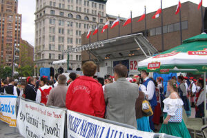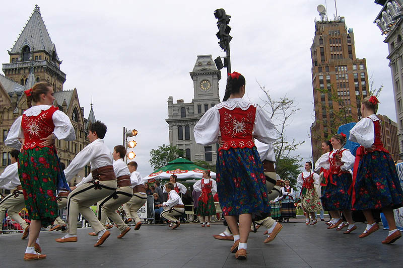 The beautiful Alizma triplets from Los Angeles, singing and playing the violins captivated the audience! The talented dancers from Toronto, Canada, the Lechowia Dance Company, the Tatry Polish Folklore Ensemble from Montreal, Quebec, and the Little Poland Dance Ensemble from Utica, New York had the crowd on their feet clapping as they watched the young people perform dances from various areas of Poland. Kasia Malinowska and Kava 4.2 warmed the square with their energetic electronic act and Joe Stanky and his Cadets had the audience dancing under the stars. Besides Joe Stanky, there were three additional polka bands: Syracuse’s Jasiu Klocek and the Salt City Brass with the lovely vocal of Susan Klocek, from Pennsylvania John Stevens and Doubleshot and from