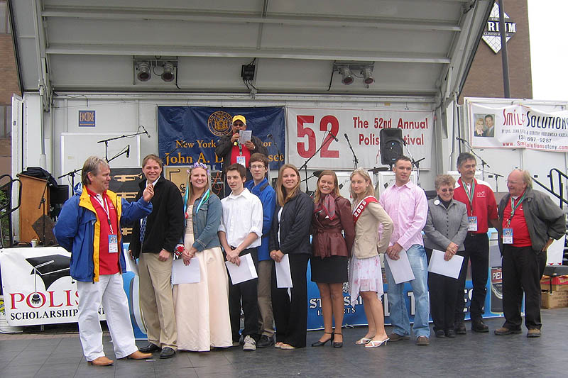Thanks to Stanley Stawski, founder of Stawski Imports and Price Chopper, who were with the Polish Festival from the time the city of Syracuse invited ethnic festivals to downtown Syracuse. Ten Central New York students each received $1,000.00 to help further their education. Based on scholastic aptitude, financial need, career aspirations, extra curricular activities and participation in Polish community activities the following students received the award: Richard Adamczyk, Melissa Bartoszewski, Karol Koziol, Thaddeus Lenkiewicz, Joseph Lyszczarz, Monika Skwarnicka, Eva Sztechmiler, Ewa Szymanska, Agatha Wozniak and Piotr Wozny.
