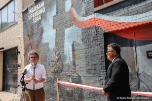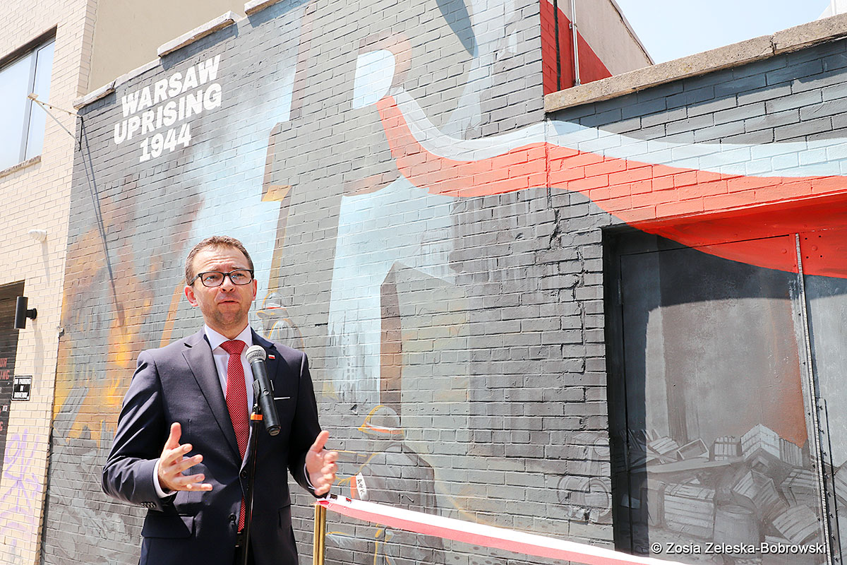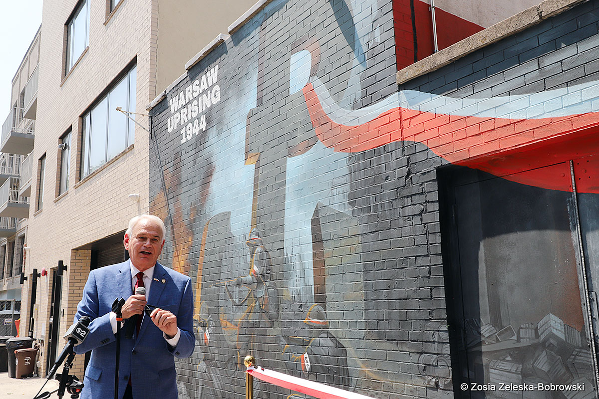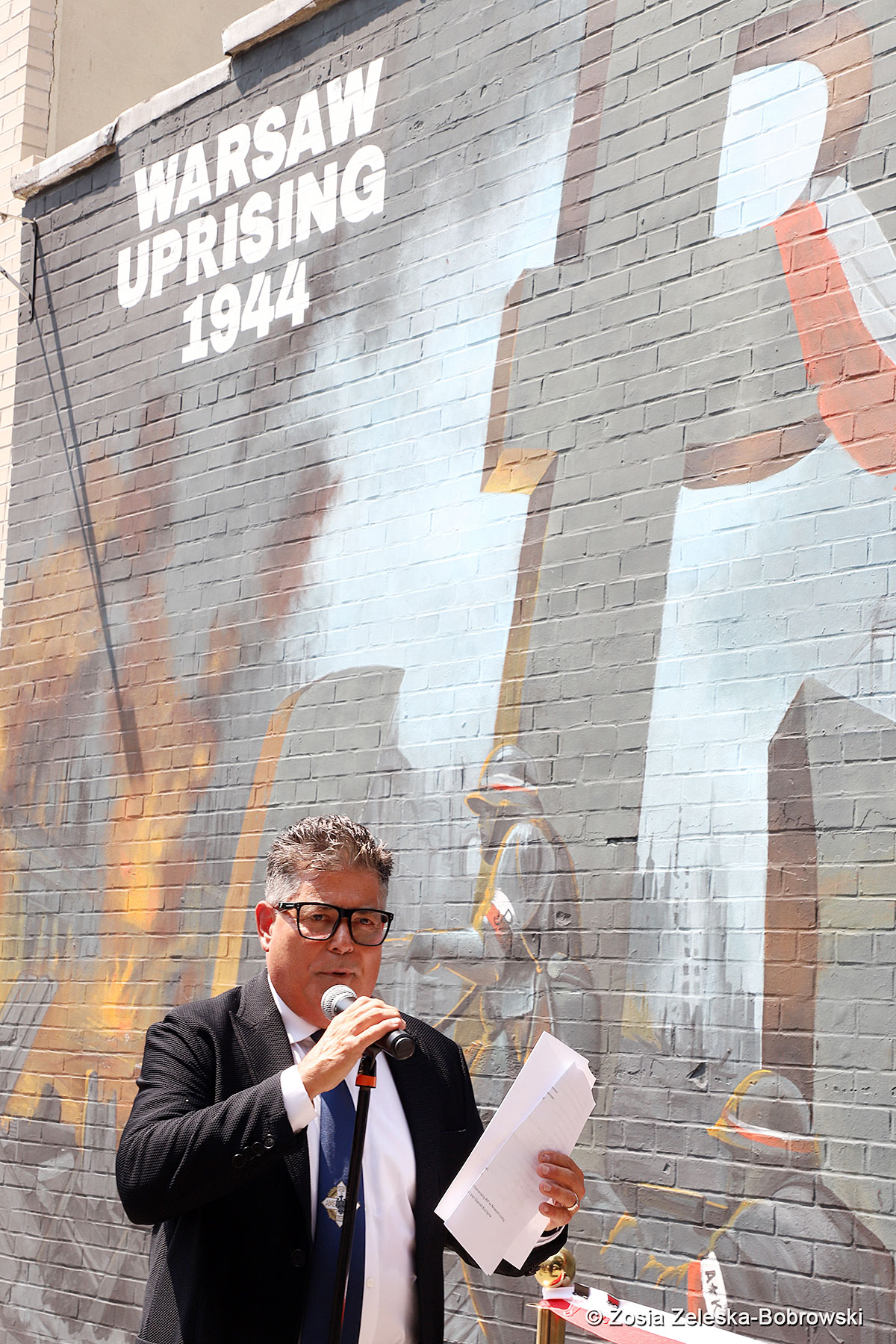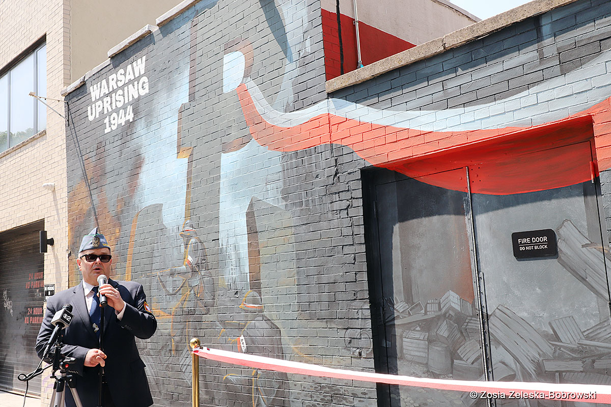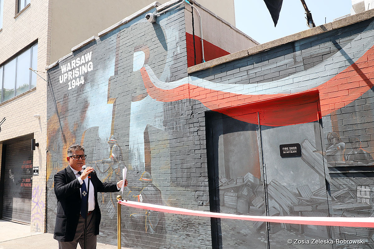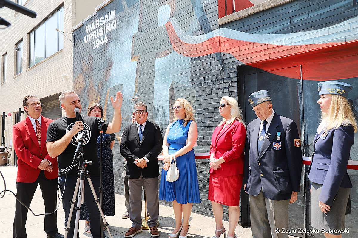 Na zakończenie głos zabrał Grzegorz Fryc – inicjator projektu, Prezes Gram-X Promotions, który wspólnie ze Stowarzyszeniem Weteranów Armii Polskiej doprowadził do realizacji projektu. Przypomniał on, że Mural stworzony został w 2014 na ścianie Polskiego Domu Narodowego na Greenpoincie. Pierwszą wersję muralu namalował polonijny artysta Rafał Pisarczyk. Mural został zdewastowany, a kilka miesięcy później nastąpiła re-dedykacja. Mural od samego początku miał być żywym memoriałem, miał być przemalowywany na różne rocznice i kolejni artyści mieli dostawać szansę aby oddać w Nowym Jorku hołd Powstańcom Warszawskim. 80 rocznica jest ku temu idealną okazją.