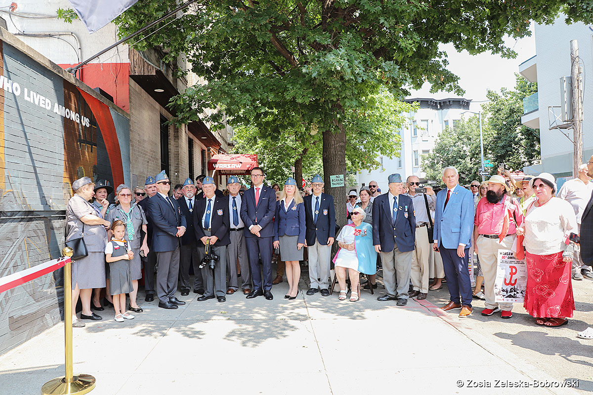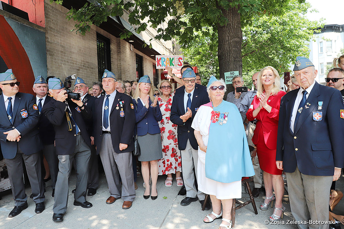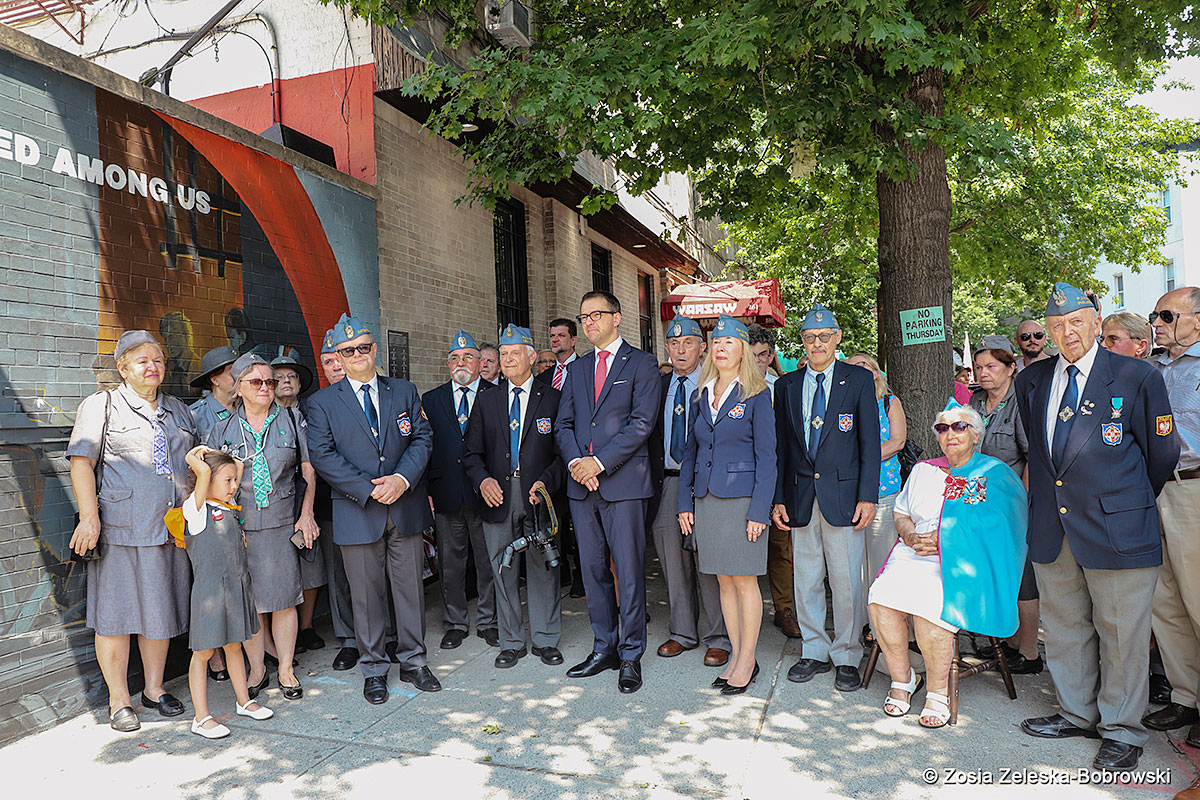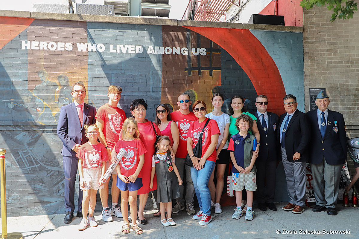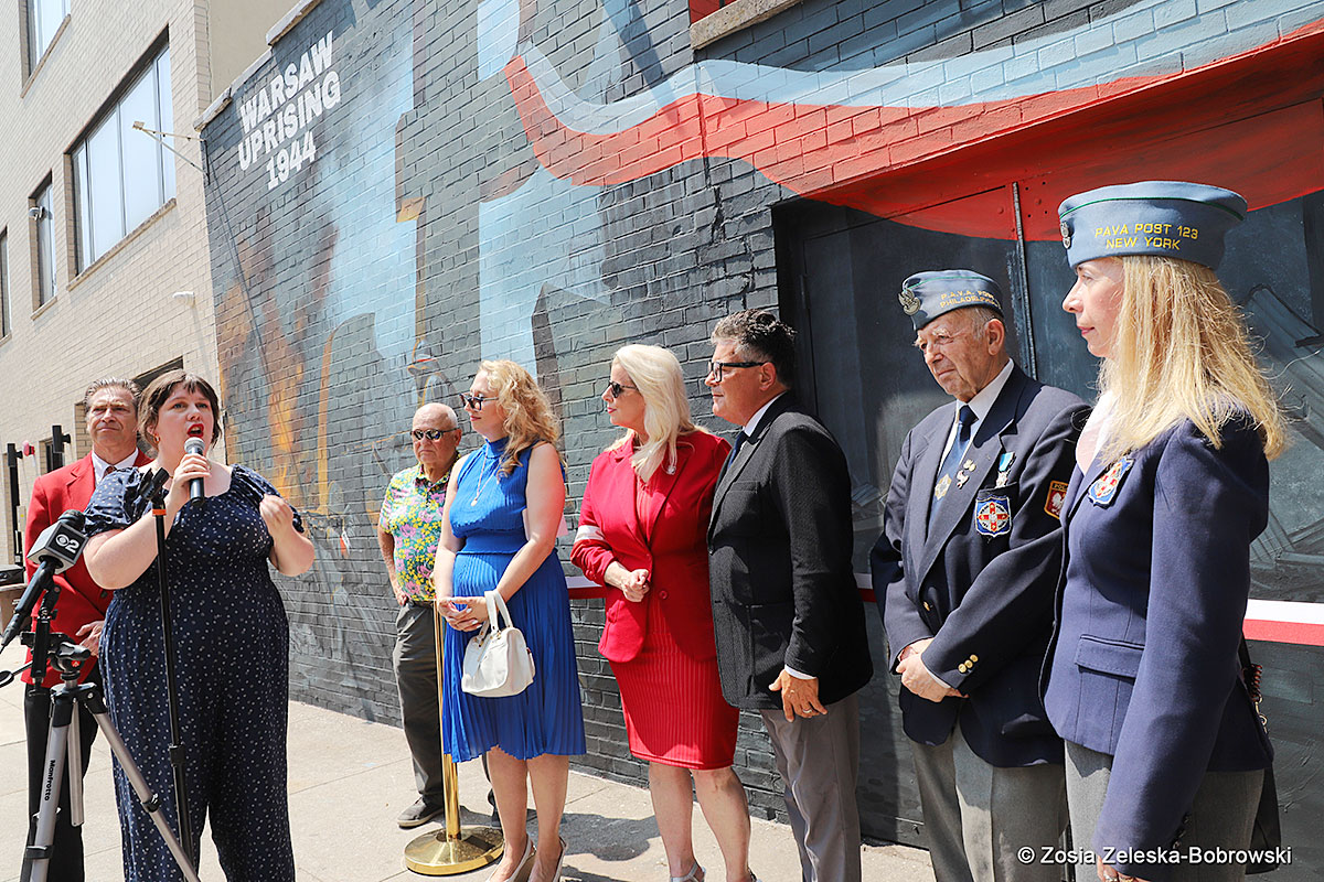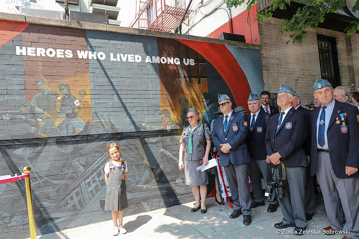 Uroczystość przy Muralu prowadził Marek Chrościelewski, prezes Polskiego Domu Narodowego, komendant okręgu 2 SWAP. Przemówienia wygłosili:Konsul Generalny Mateusz Sakowicz, Komendant Główny Stowarzyszenia Weteranów Armii Polskiej w Ameryce, Tadeusz Antoniak, nowojorscy radni, Lincoln Restler, Robert Holden, Szef Biura Radnego, Daniel Kurzyna, poseł stanowa Emily Gallagher, dziennikarka Rita Cosby, mec. Adriana Woś-Myśliwiec.
