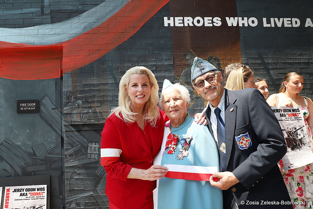 Po rewelacyjnym występie Chóru Dziecięcego Polonia uczestniczący w uroczystości odsłonięcia muralu Mikołaj Kaczmarek wręczył dwie koloryzowane przez niego fotografie. Jedną – z podobizną Antoniego Chrościelewskiego, uczestnika bitwy o Monte Cassino – otrzymał jego syn Marek Chrościelewski, prezes Polskiego Domu Narodowego “Warsaw”. Drugą, z podobizną Anny “Hanki” Wajcowicz, która zginęła 1 sierpnia 1944 roku, otrzymał naczelny komendant SWAP Tadeusz Antoniak.