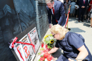 Po tym nastąpiło oficjalne odsłonięcie muralu, przecięcie wstęgi. Dokonali tego potomkowie powstańców. Towarzyszyli im przedstawiciele SWAP, Tadeusz Antoniak, Marek Chrościelewski i Zygmunt Bielski, przedstawiciele PSFCU, Bogdan Chmielewski i Krzysztof Matyszczyk. Przedstawiciele Związku Harcerstwa Polskiego oraz przedstawiciele PSFCU, Krzysztof Matyszczyk i dr Iwona Korga złożyli kwiaty i znicze pod muralem.
