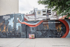 Nowy mural jest interpretacją bitwy w Powstaniu Warszawskim.Pokazuje palącą się Warszawę i powstańców w akcji bojowej, którzy chronieni są przez ogromny blok w kształcie kotwicy Polski Walczącej. W prawej części muralu uwzględnionych jest 12 powstańców którzy po zakończeniu wojny trafili do USA.