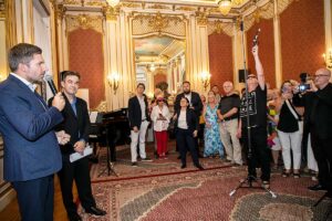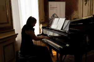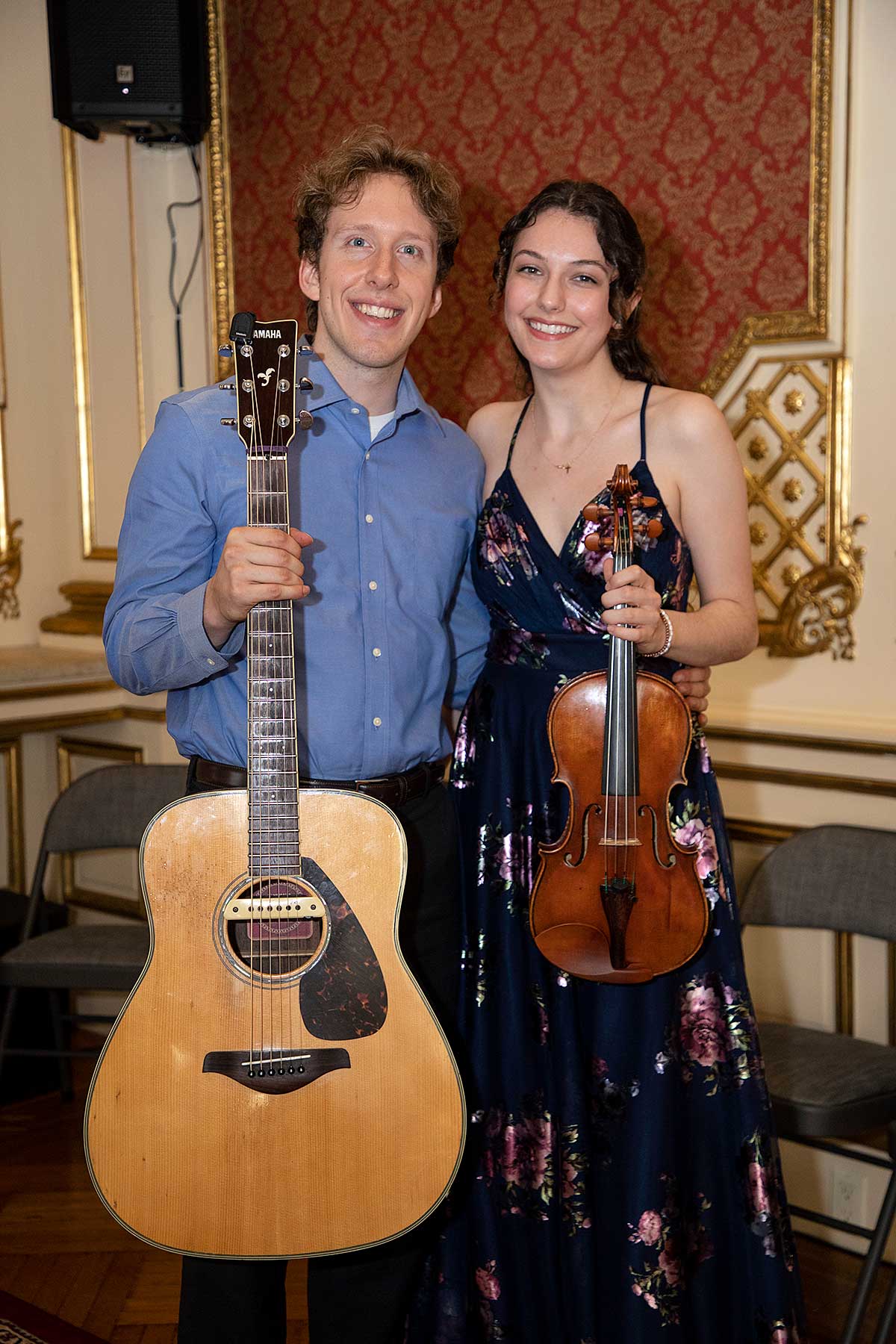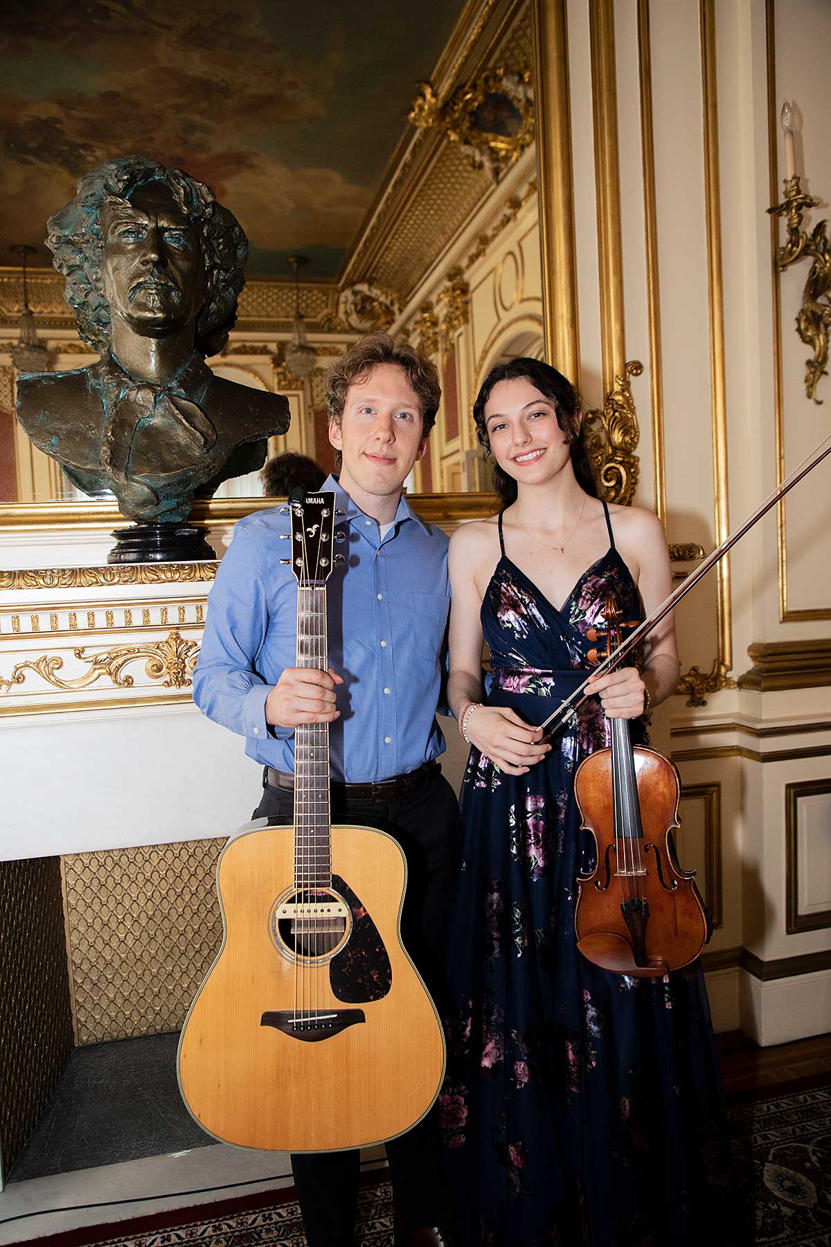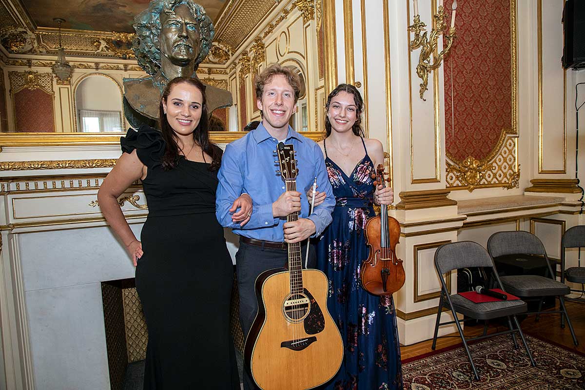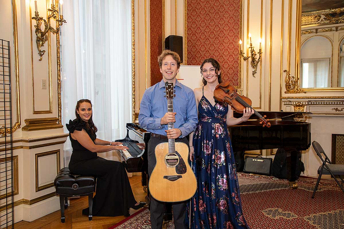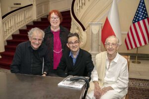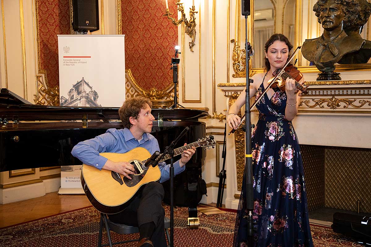 Wernisaż był uświetniony wspaniałą muzyką w wykonaniu wnuczki i wnuka Jerzego Kossa, Violetty Koss (fortepian), Adriana Kossa (gitara) oraz Carolyn Carr (skrzypce).
