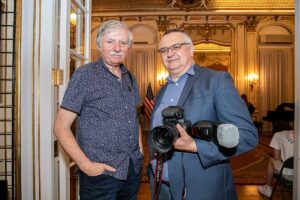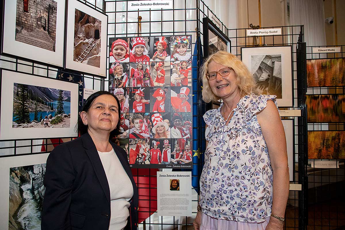 Zosia Żeleska-Bobrowski, jedna ze współzałożycielek Klubu powiedziała, że cieszy się iż Klub obchodzi Srebrny Jubileusz. Opowiedziała krótką historię Klubu. Powstanie Polsko-Amerykańskiego Klubu Fotografika zainspirowane było wielkim sukcesem spotkania zorganizowanego w 1998 roku w polskim Konsulacie przez Prezesa Polskiego Klubu Podróżnika, Jerzego Majcherczyka na temat fotografowania. Spotkanie to pokazało jak wielkie jest zainteresowanie fotografią i było bodźcem do założenia w czerwcu tego samego roku PAKF. Inicjatywę założenia podjął ówczesny dyrektor Nowego Dziennika, Romuald Dymski wraz z grupą fotografów: Jarkiem Woszczyną, Jerzym Kossem, Wojtkiem Kubikiem i Zosią Żeleską-Bobrowski. Przez pierwsze lata działalności Klub mieścił się w siedzibie Nowego Dziennika, po jego przeniesieniu poza Nowy Jork Klub tułał się przez wiele lat spotykając w różnych miejscach aż w 2022 roku Centrum Polsko-Słowiańskie użyczyło mu gościny. Stwierdziła iż Klub miał dużo szczęścia iż po odejściu na emeryturę Edwarda Madeja znalazł sie odpowiedni następca, świetnie nadający się na to stanowisko, wszechstronnie wykształcony fotograficznie, filmowo, komputerowo i technicznie, Darek Kanarek. Dzięki niemu powstał piękny katalog. Na zakończenie przedstawiła Jerzego Majcherczyka. Obecni byli również konsulowie Stanisław Starnawski oraz Tomasz Wielgomas, który był bardzo pomocny przy organizowaniu wernisażu.