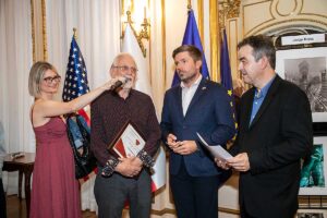 Następnie zabrał głos nowy Prezes Klubu Dariusz Kanarek witając wszystkich oraz dziękując Edwardowi Madejowi za długoletnie bo 18 letnie wspaniałe prezesowanie Klubem. Poczem Konsul Generaly wręczył Edwardowi Oficjalną Nominację “Ambasadora Klubu”. Dariusz Kanarek przedstawił początki powstania Klubu, przypomniał słynne spotkanie na ławeczce w Madison Park, Jarosława Woszczyny, Zosi Żeleskiej-Bobrowski i Jerzego Kossa, które zainicjowało powstanie Klubu i było uwiecznione na zdjęciu przez 9-letnią wnuczkę Jurka, Violettę. Powiedział iż mamy być z czego dumni: zostało zorganizowanych 18 wystaw w tym 11 Salonów, spotkania ze światowej sławy artystami jak Eva Rubinstein, Ryszard Horowitz, Tomek Sikora, Czesław Czapliński i Rick Sammon oraz wiele plenerów fotograficznych. Następnie przedstawił obecnych na wernisażu: Evę Rubinstein i Ryszarda Horowitza.
