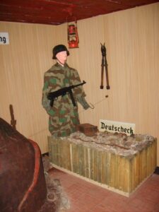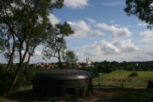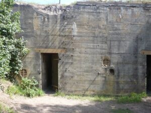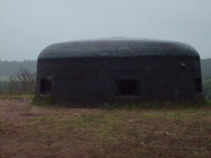 Przystąpiono do budowy umocnień, ze względu na realnie rysujące się zagrożenie wojny ze Związkiem Sowieckim. Była to również najkrótsza droga z Suwałk do Olecka. Dzieła budowy tych schronów podjęły się jednostki inżynieryjne Wehrmachtu oraz grupy organizacji budowlanej Todt. Nadzorcą prac był mjr inż. Horst Renecke z dowództwa i Okręgu Wojskowego z Królewca. Łącznie wybudowano kilkanaście schronów. Nasz skansen jest to najważniejszy dwukondygnacyjny średni schron bojowy typu Regelbau 113. Niemcy oznaczyli go jako Bw 24 (napis wewnątrz kopuły).