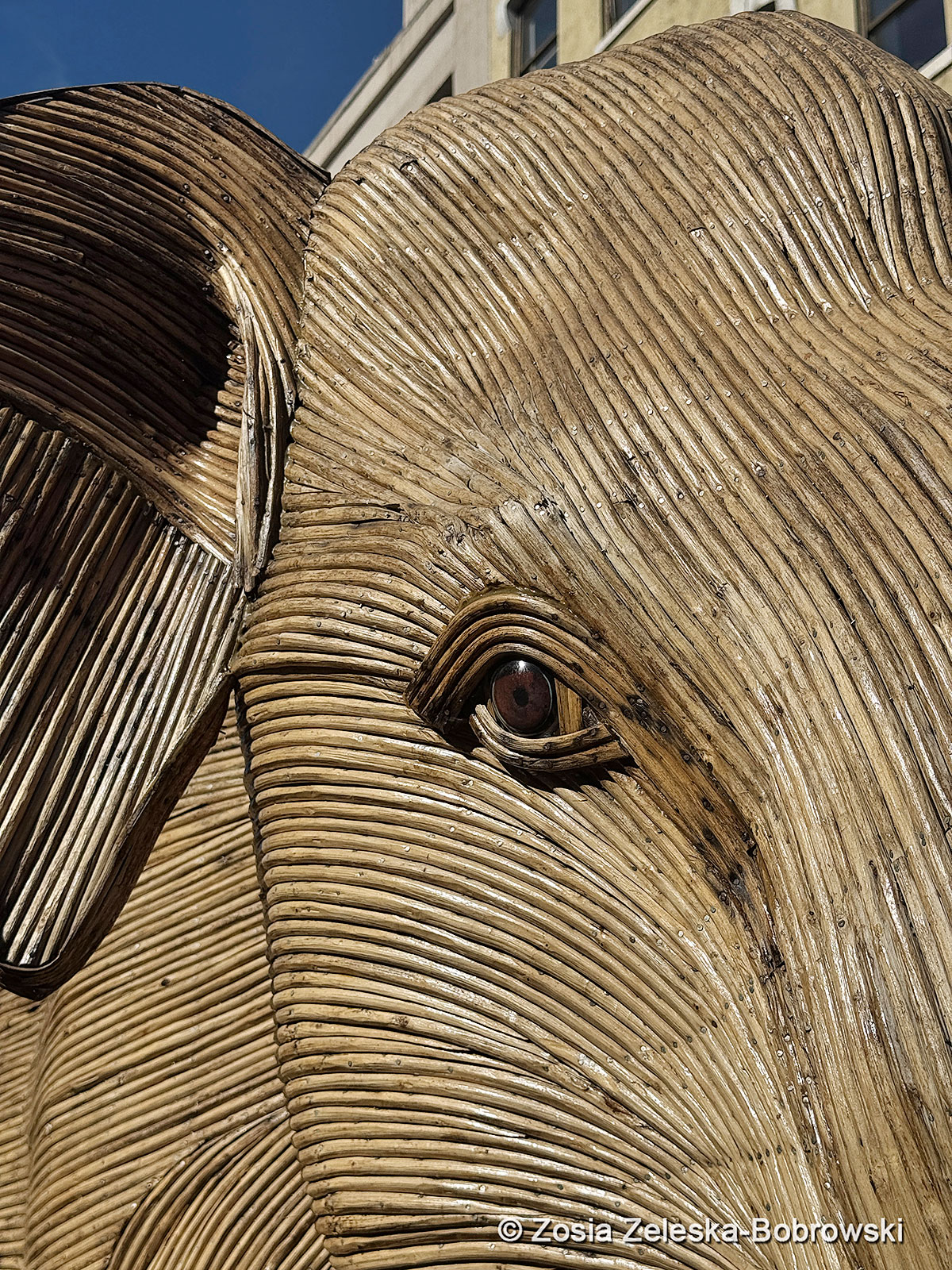 Rzeźby są wykonane ze stalowej konstrukcji korpusu, pokrytej paskami lantany i ozdobionej drewnianymi pazurami i kłami oraz oczami z żywicy.