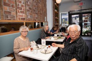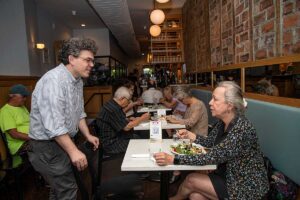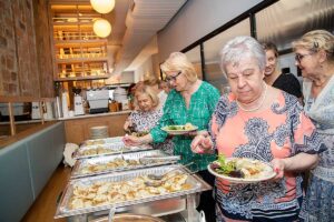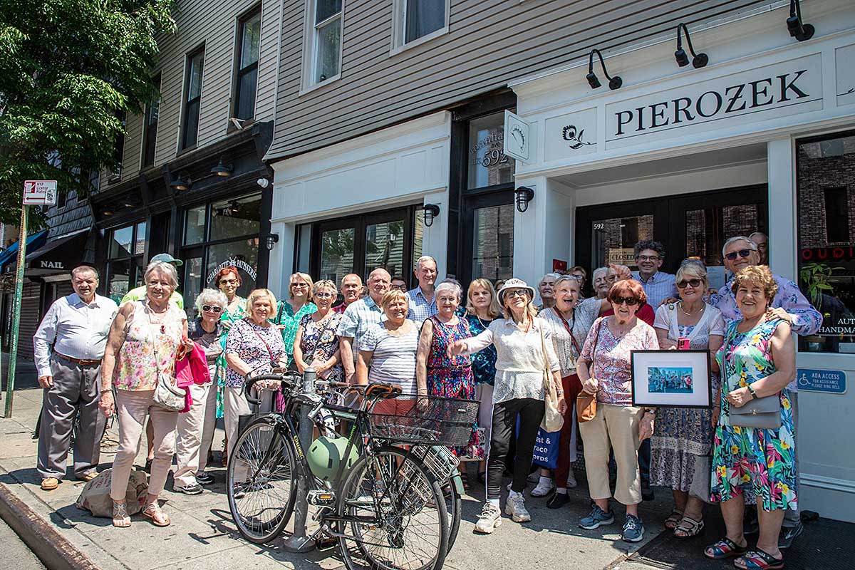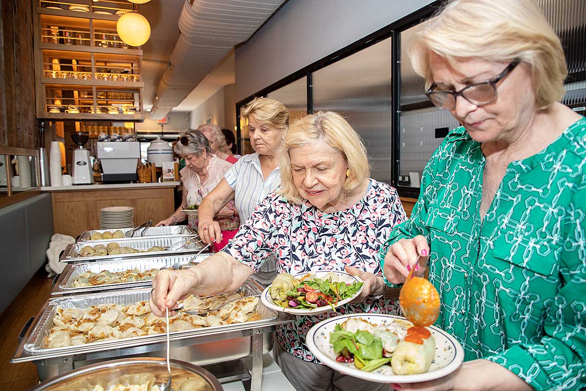 Seniorom towarzyszyli, Urszula Galej, Koordynator Programu Krakus, Agata Forys, Pracownik Socjalny Krakusa oraz Marta Edwards, Asystent Administracyjny Northside Senior Center. Gospodarzami zaś byli, Aleksandra Kucharska, właścicielka Restauracji Pierożek i Jakub Madej, Manager Restauracji. Na zakończenie tego miłego spotkania, Seniorzy Klubu Krakus wręczyli Lincolnowi Restlerowi zdjęcie z poprzedniego wspólnego lunchu we wrześniu w pięknej scenerii Brooklyn Bridge Park z widokiem na wieżowce dolnego Manhattanu, nad East River oraz wszyscy pozowali do zdjęcia grupowego.